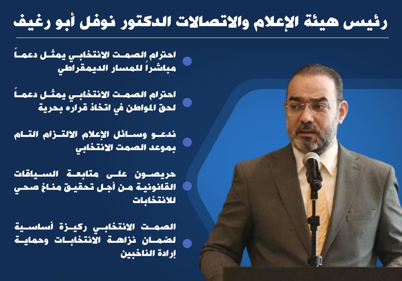 رئيس هيأة الاعلام والاتصالات : احترام الصمت الانتخابي يمثل دعماً مباشراً للمسار الديمقراطي