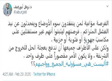 نوفل ابورغيف: ذهابنا الى الحياد الايجابي لايمنع من مواصلة أدوارنا الوطنية وواجباتنا السياسية..