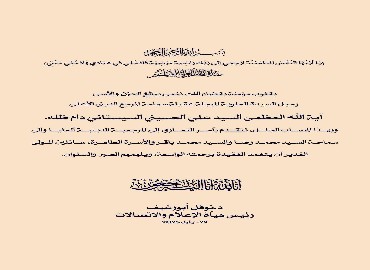 رئيس هيأة الاعلام والاتصالات يعزي بوفاة عقيلة سماحة المرجع الديني الاعلى آية الله العظمى السيد علي الحسيني السيستاني دام ظله.