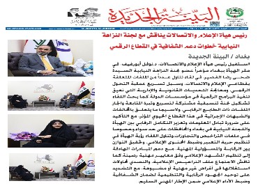 صحيفة البينة الجديدة .. رئيس هيأة الاعلام والاتصالات يناقش مع لجنة النزاهة النيابية خطوات دعم الشفافية في القطاع الرقمي