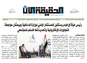 صحيفة الحقيقة الان .. رئيس هيأة الاعلام والاتصالات يستقبل المستشار الامني لوزارة الداخلية