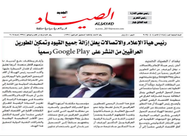 صحيفة الصياد .. رئيس هيأة الاعلام والاتصالات يعلن تمكين المطورين العراقيين من النشر على google play