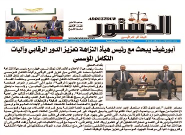 صحيفة الدستور .. ابورغيف يبحث مع رئيس هيأة النزاهة تعزيز الدور الرقابي وآليات التكامل المؤسسي