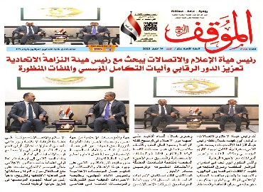صحيفة الموقف .. رئيس هيأة الاعلام والاتصالات يبحث مع رئيس هيأة النزاهة الاتحادية تعزيز الدور الرقابي .