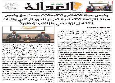 صحيفة العدالة .. رئيس هيأة الاعلام والاتصالات يبحث مع رئيس هيأة النزاهة الاتحادية تعزيز الدور الرقابي .
