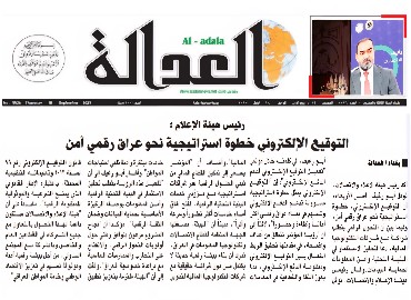 صحيفة العدالة .. ابورغيف : التوقيع الالكتروني خطوة استرايجية نحو عراق رقمي آمن