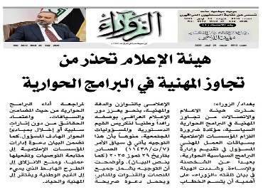 صحيفة الزوراء .. هيأة الاعلام والاتصالات تحذر من تجاوز المهنية في البرامج الحوارية