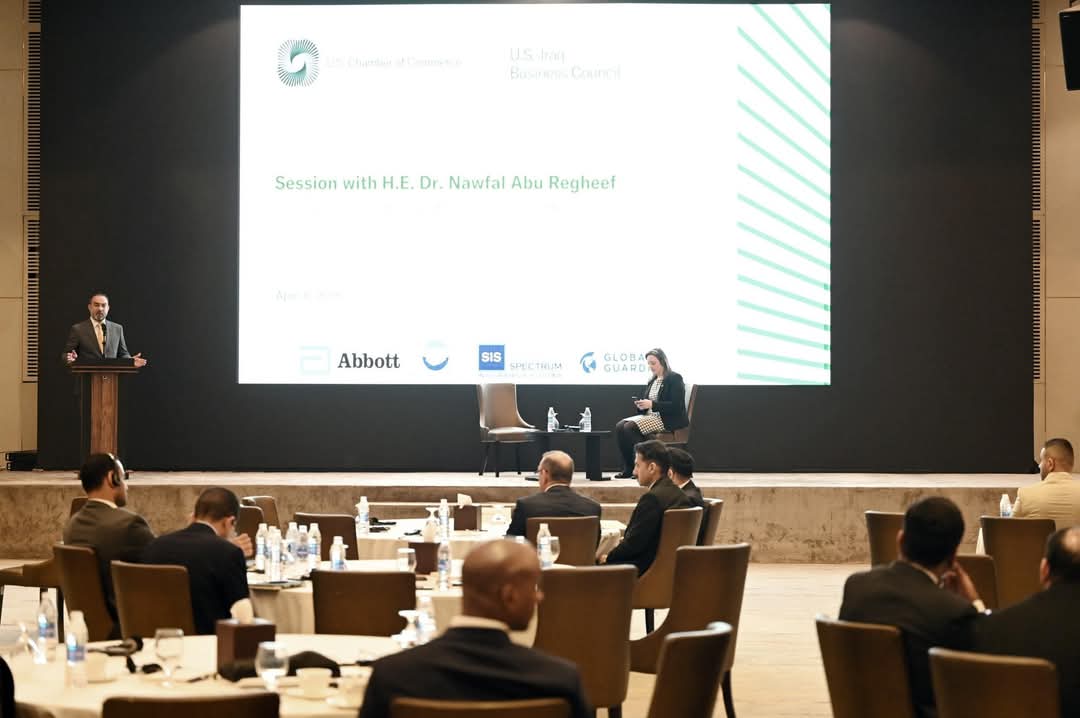 استضاف مجلس الأعمال الأمريكي العراقي، بالتعاون مع غرفة التجارة الأمريكية، رئيس هيأة الإعلام والاتصالات، د.نوفل أبورغيف، في ورشة موسعة أُقيمت في العاصمة بغداد، بحضور وفد اقتصادي رفيع ضم 101 شخصية يمثلون نحو 60 شركة أمريكية ناشطة في قطاعات الطاقة والتكنولوجيا والصحة.