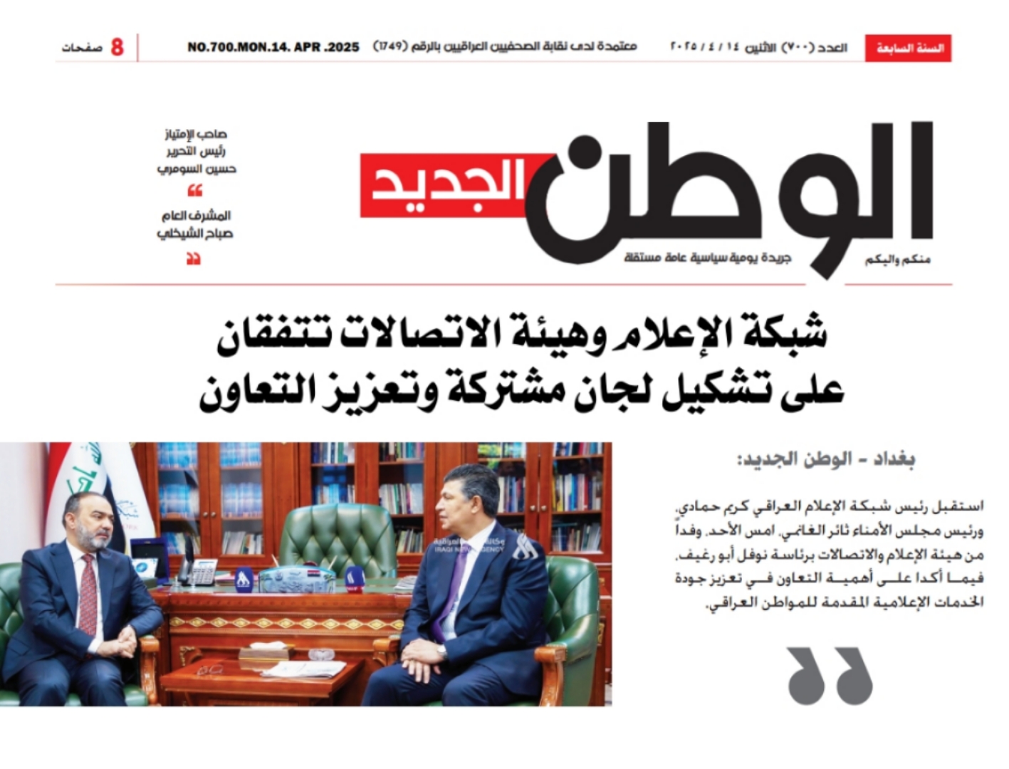 صحيفة الوطن .. شبكة الاعلام وهيأة الاتصالات تتفقان على تشكيل لجان مشتركة وتعزيز التعاون
