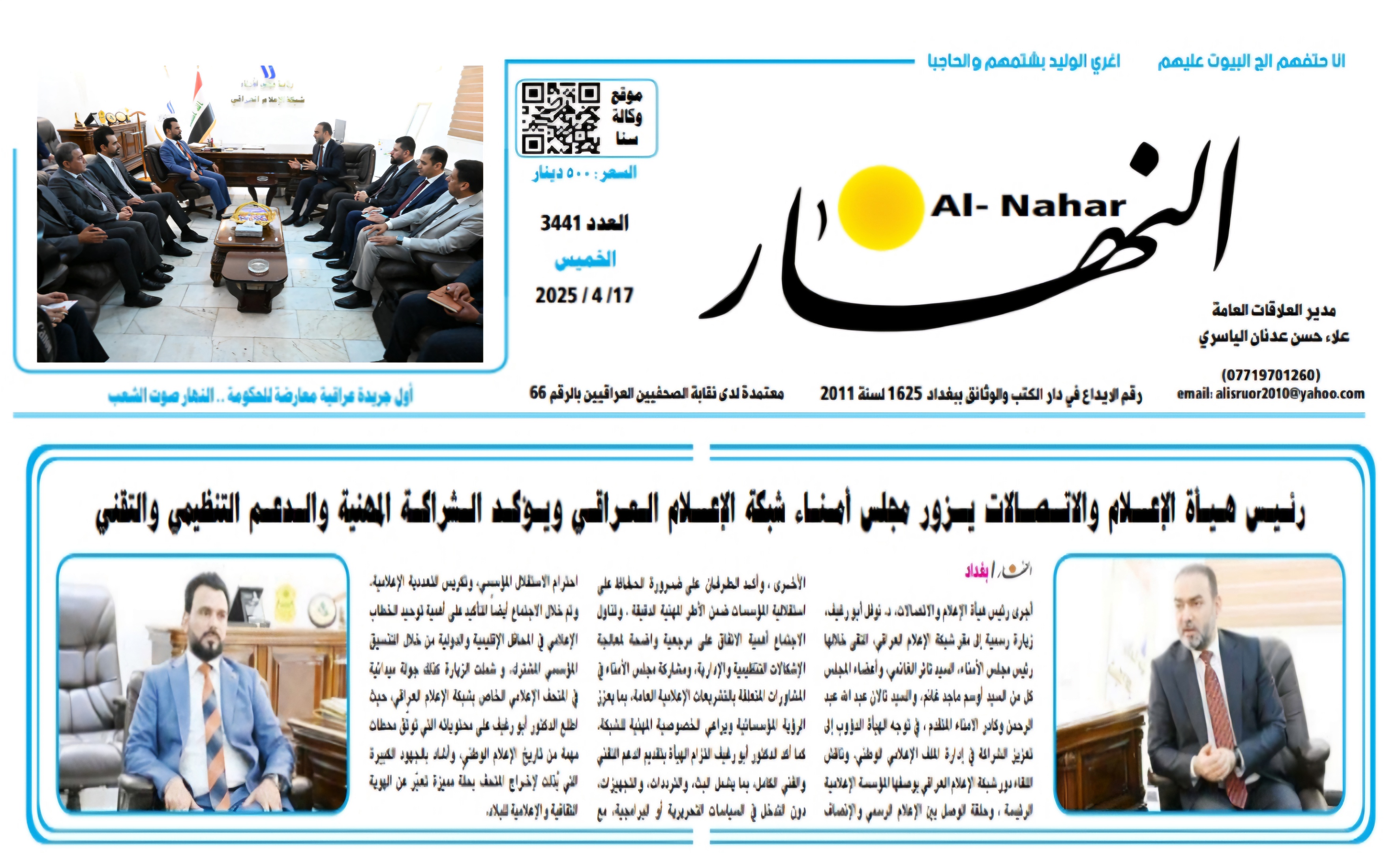 صحيفة النهار .. رئيس هيأة الاعلام والاتصالات يزور مجلس امناء شبكة الاعلام العراقي