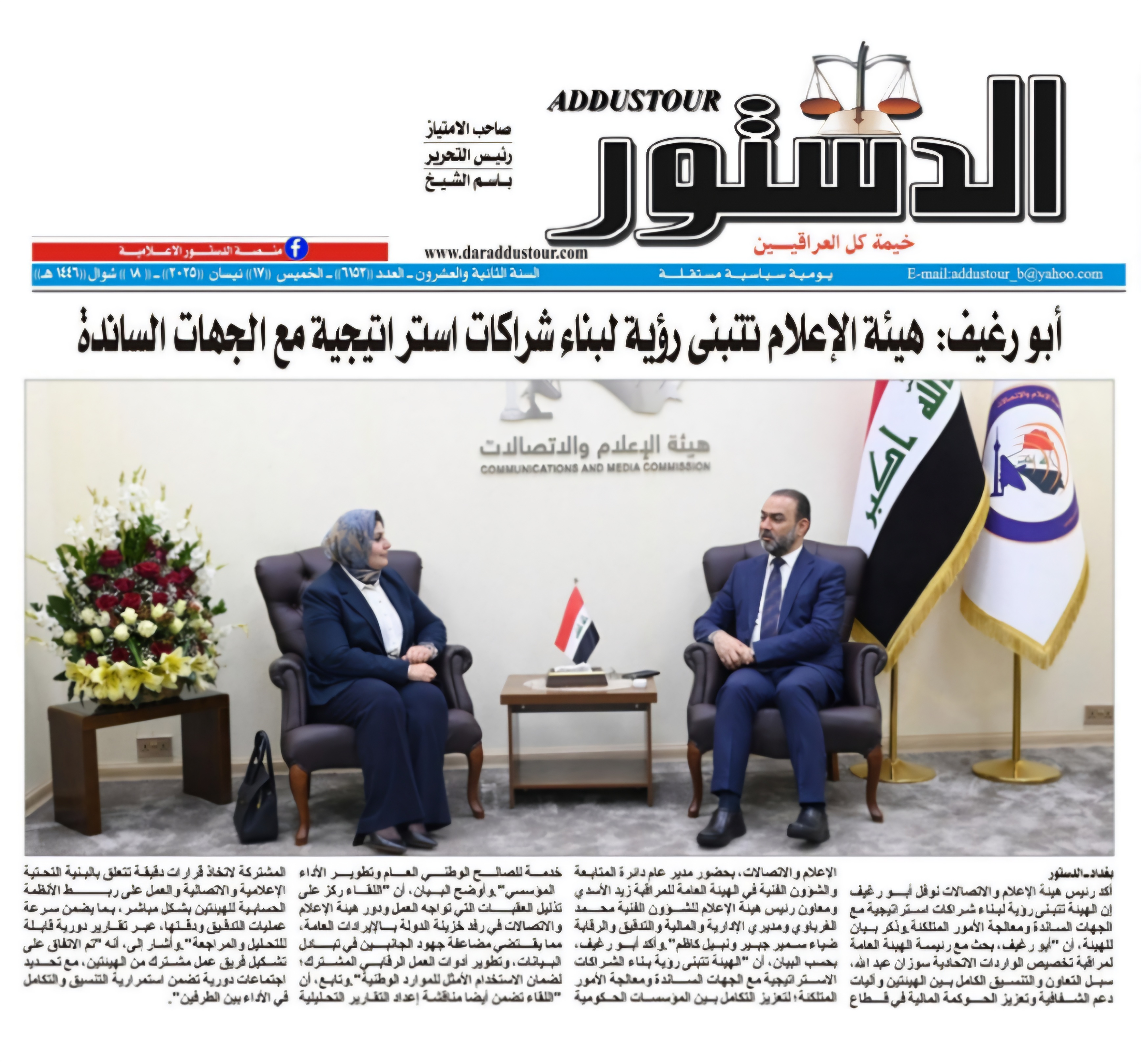 صحيفة الدستور .. ابورغيف : هيأة الاعلام تتبنى رؤية لبناء شراكات استراتيجية مع الجهات الساندة