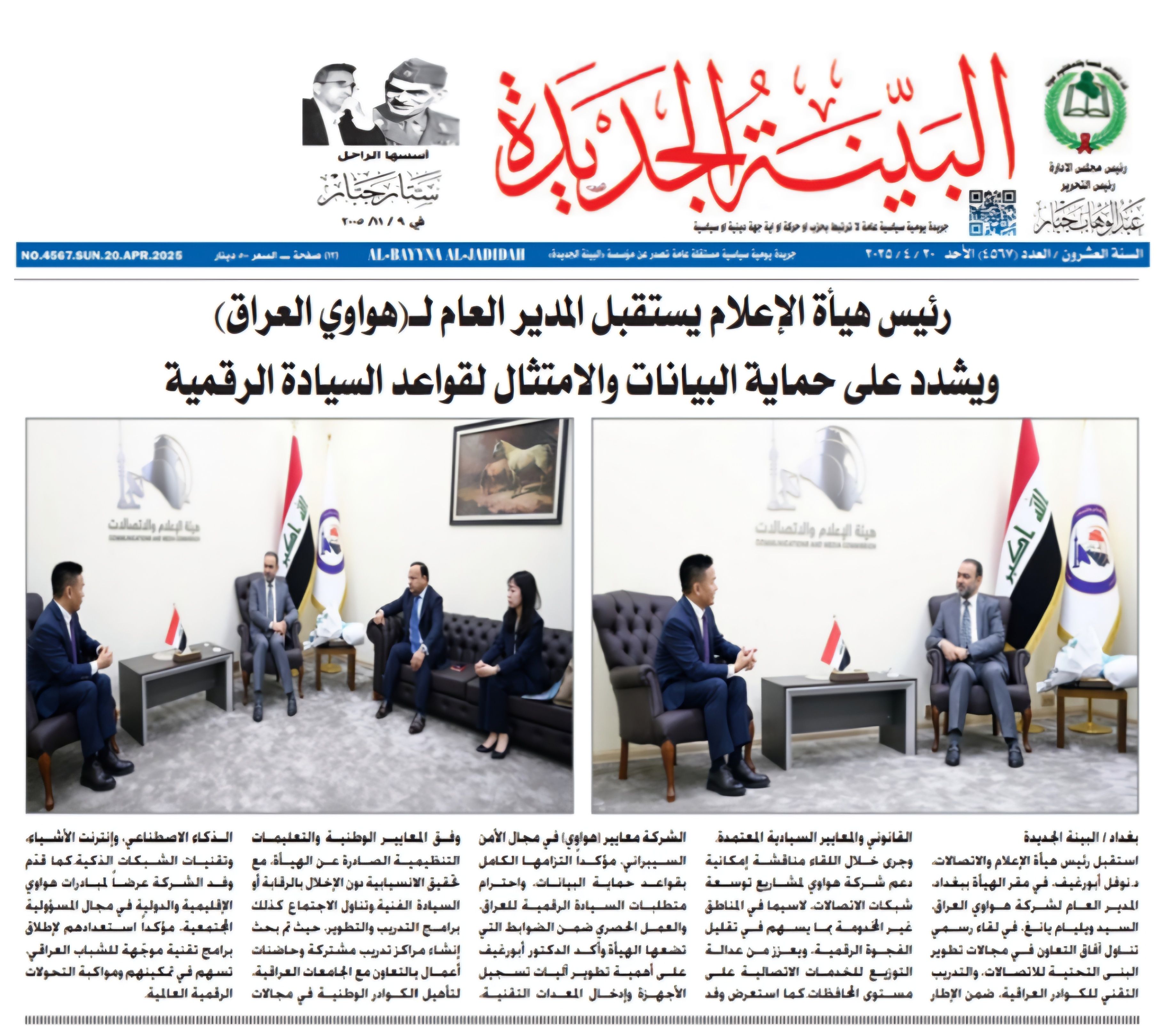 صحيفة البينة الجديدة .. رئيس هيأة الاعلام يستقبل المدير العام لـ( هواوي العراق )