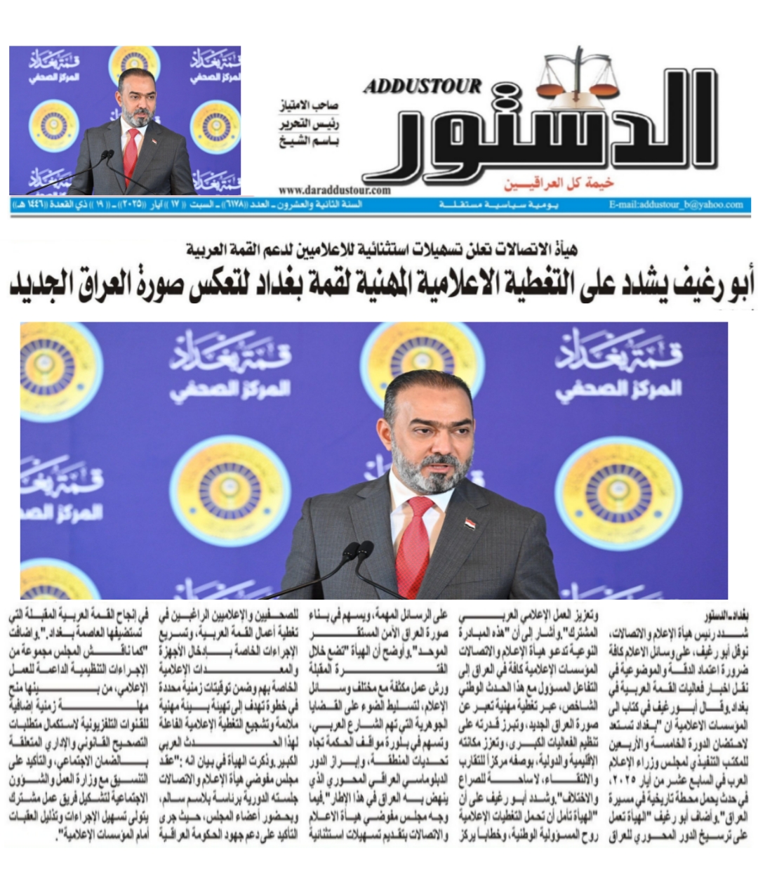 صحيفة الدستور .. ابورغيف يشدد على التغطية الاعلامية المهنية لقمة بغداد