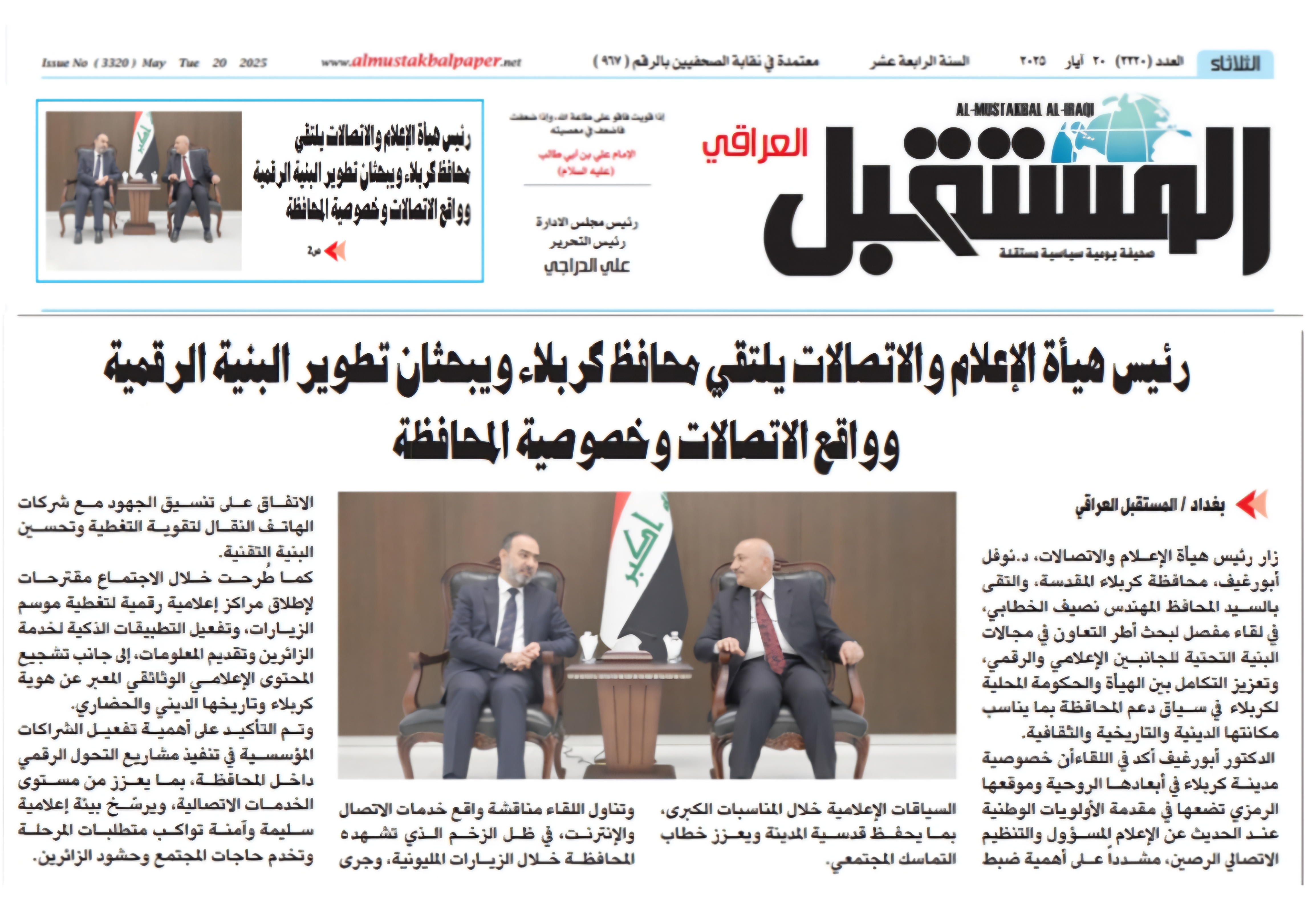 صحيفة المستقبل .. رئيس هيأة الاعلام والاتصالات يلتقي محافظ كربلاء