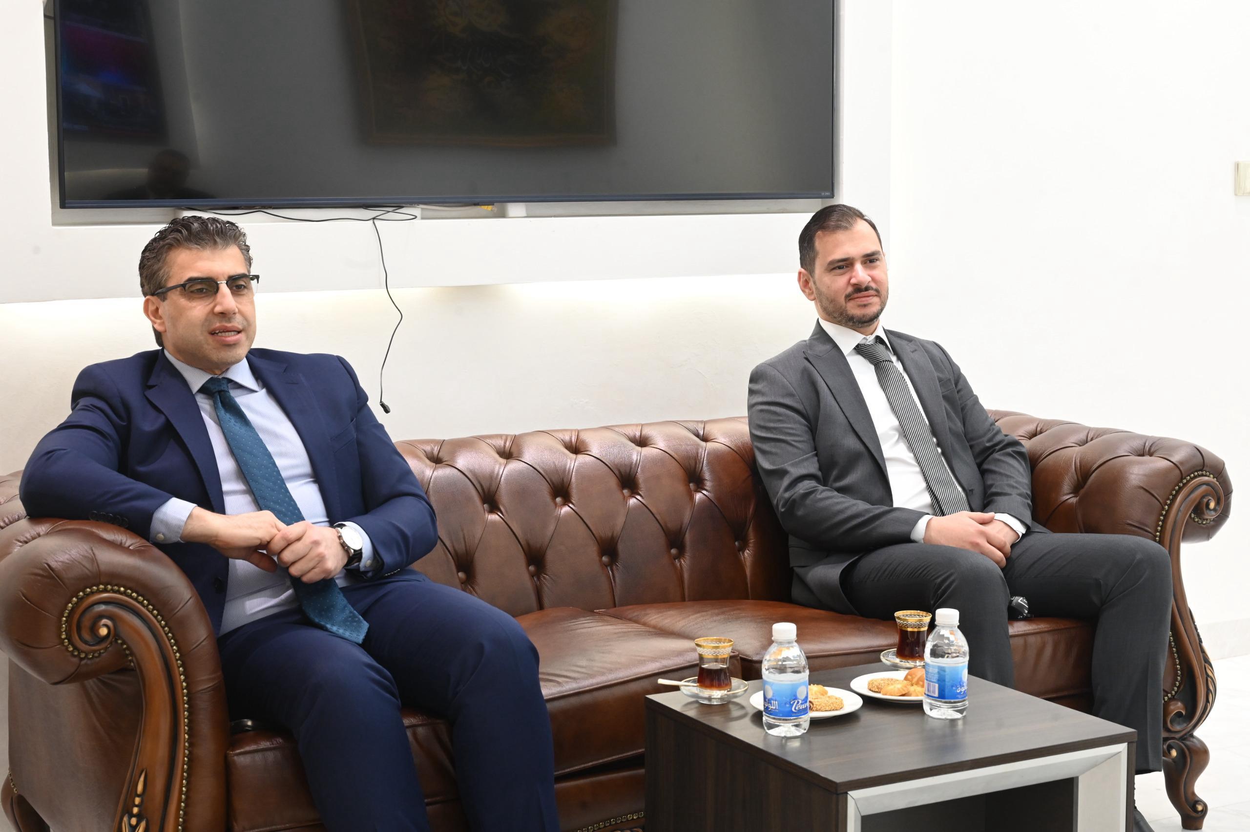 استقبل رئيس هيأة الإعلام والاتصالات، د.نوفل أبورغيف، في مكتبه ببغداد، مدير شركة البترول البريطانية British Petroleum BP العاملة في العراق، السيد زيد الياسري، لمناقشة تعزيز اليات التعاون في تنظيم الخدمات الإعلامية والاتصالاتية في مواقع الإنتاج النفطي، ولاسيما في حقول الرميلة وكركوك.