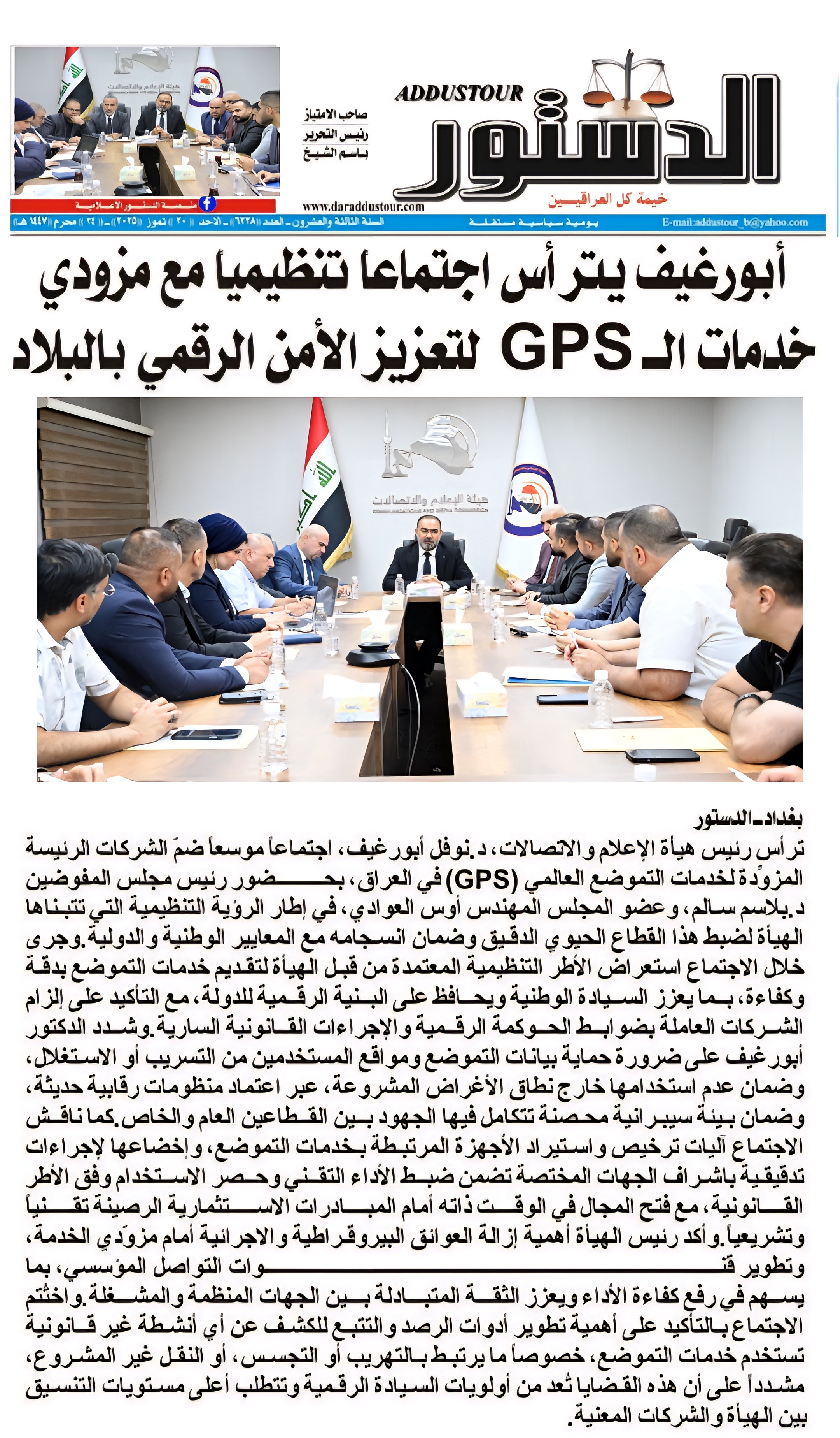 صحيفة الدستور .. ابورغيف يترأس اجتماعاً تنظيمياً مع مزودي خدمات GPS لتعزيز الامن الرقمي بالبلاد