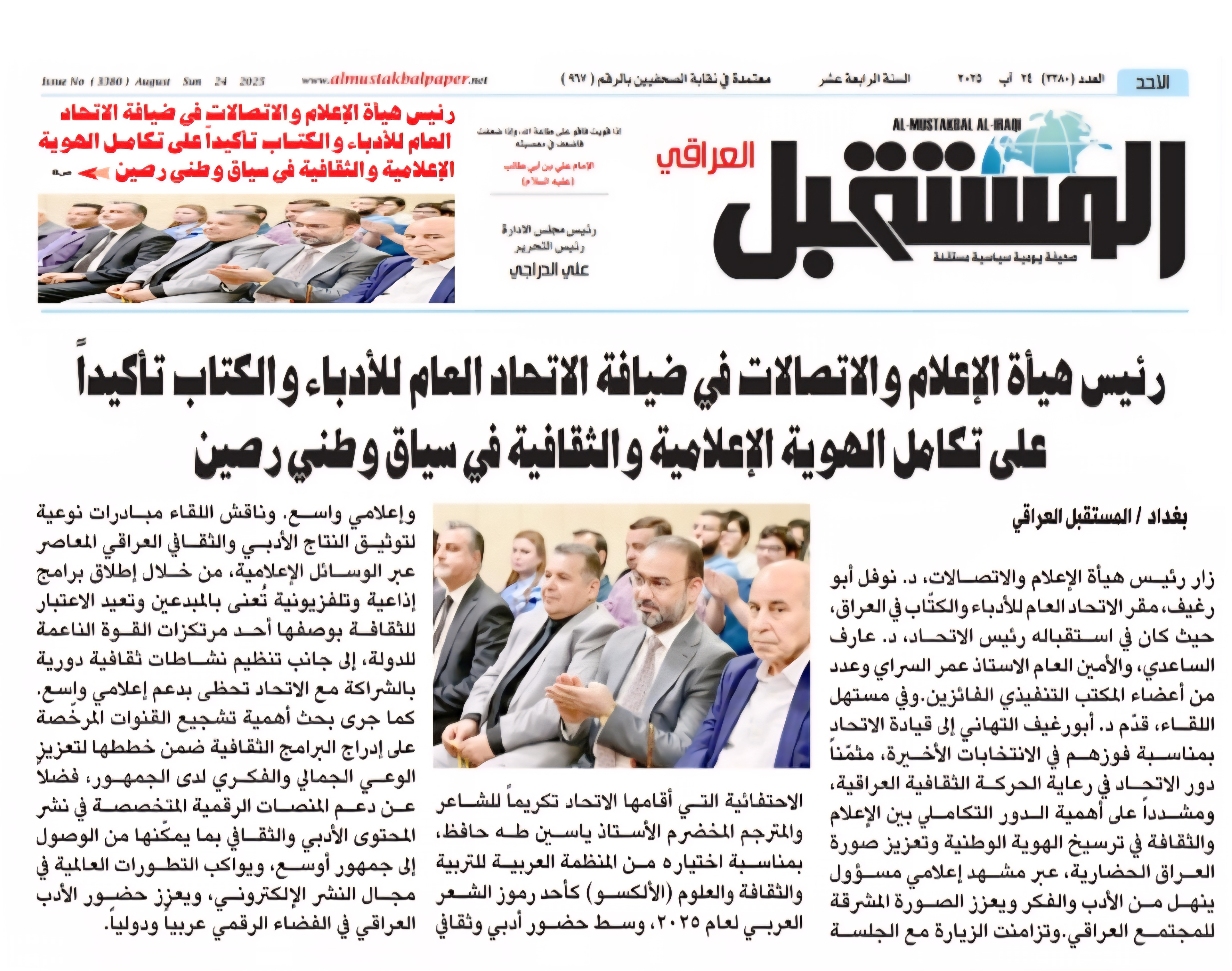صحيفة المستقبل .. رئيس هيأة الاعلام والاتصالات في ضيافة الاتحاد العام للأدباء والكُتاب .