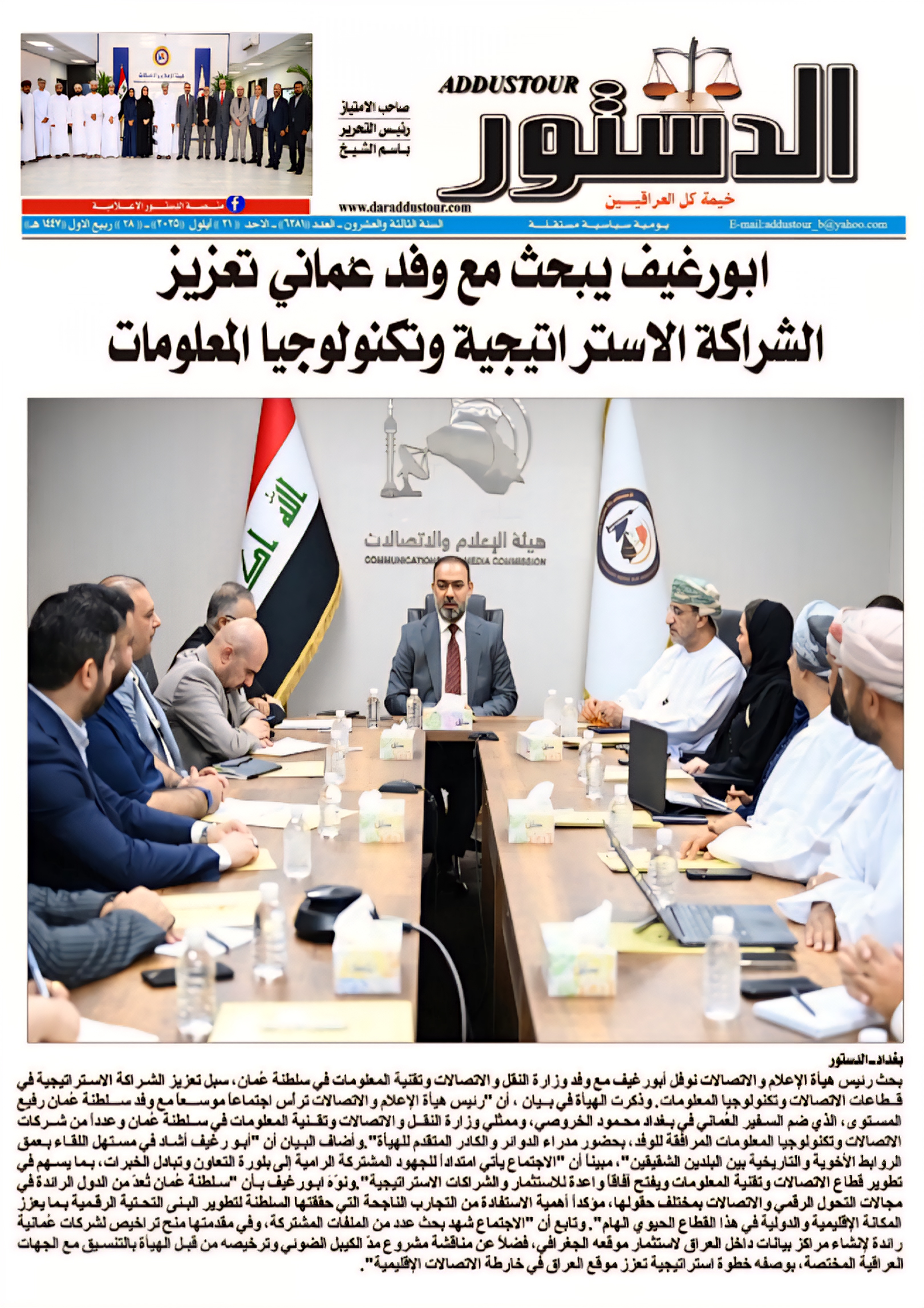 صحيفة الدستور .. ابورغيف يبحث مع وفد عماني تعزيز الشراكة الاستراتيجية وتكنولوجيا المعلومات