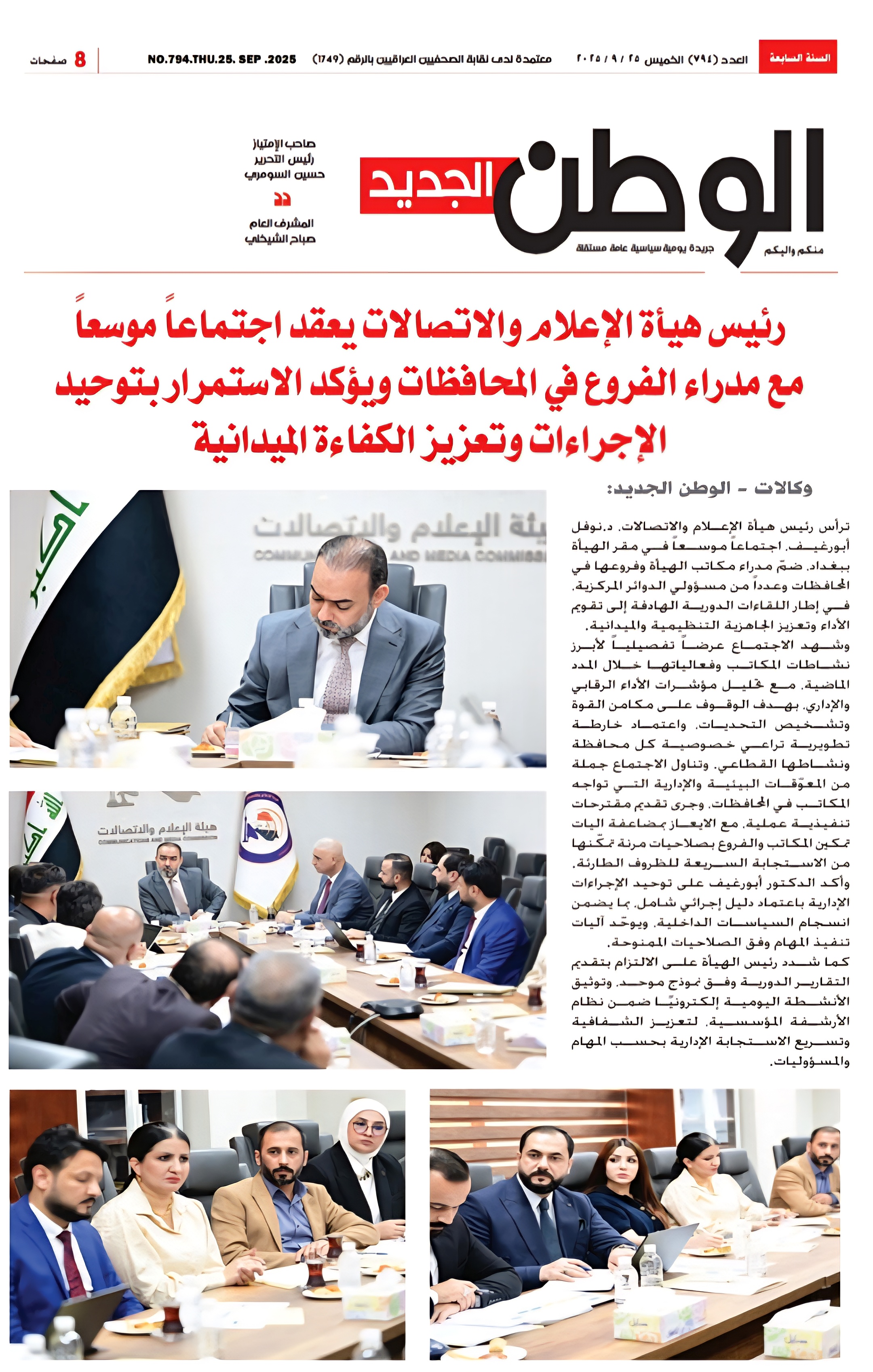 صحيفة الوطن .. رئيس هيأة الاعلام والاتصالات يعقد اجتماعاً موسعاً مع مدراء الفروع في المحافظات