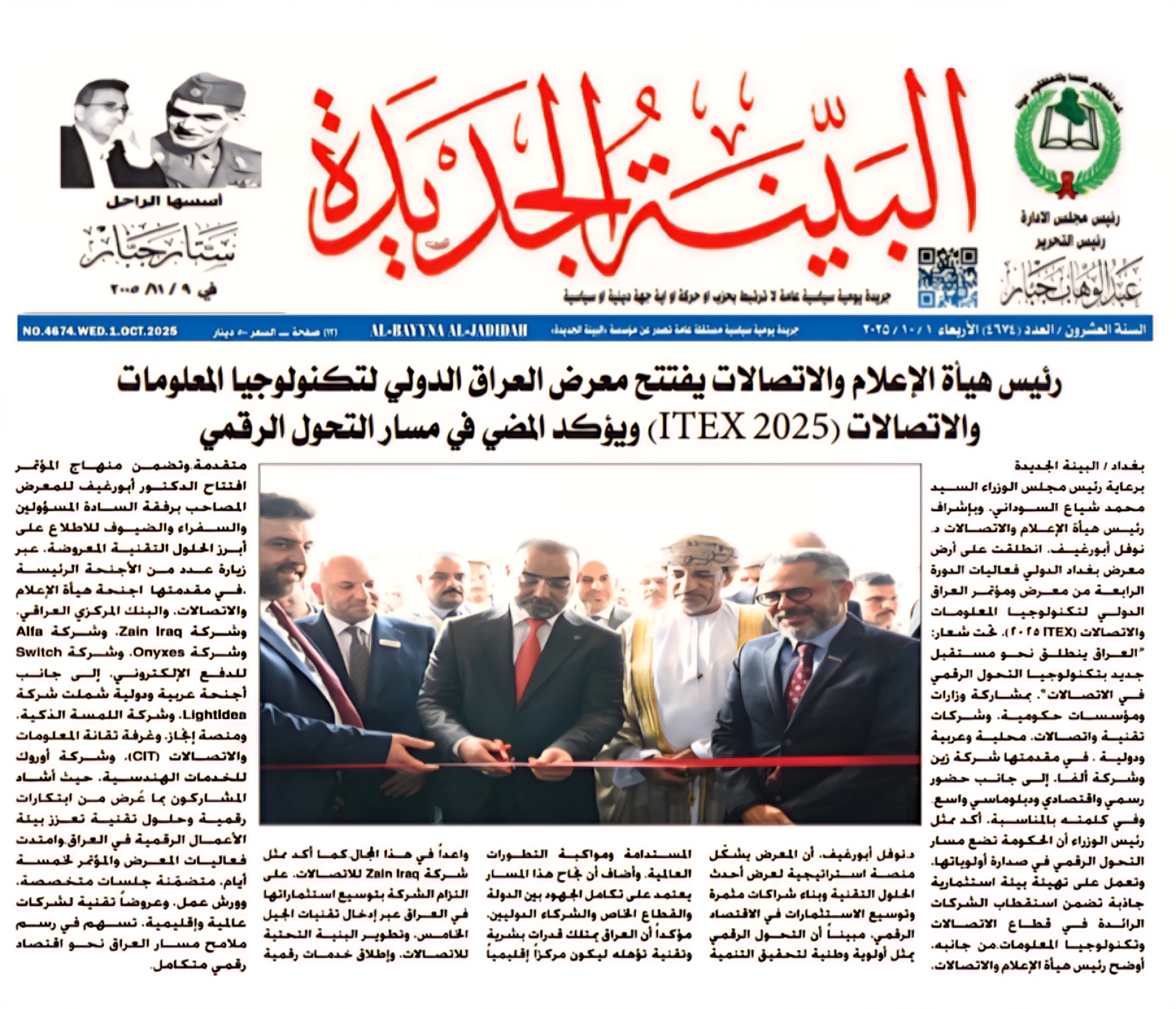 صحيفة البينة الجديدة .. رئيس هيأة الاعلام والاتصالات يفتتح معرض العراق الدولي لتكنلوجيا المعلومات والاتصالات