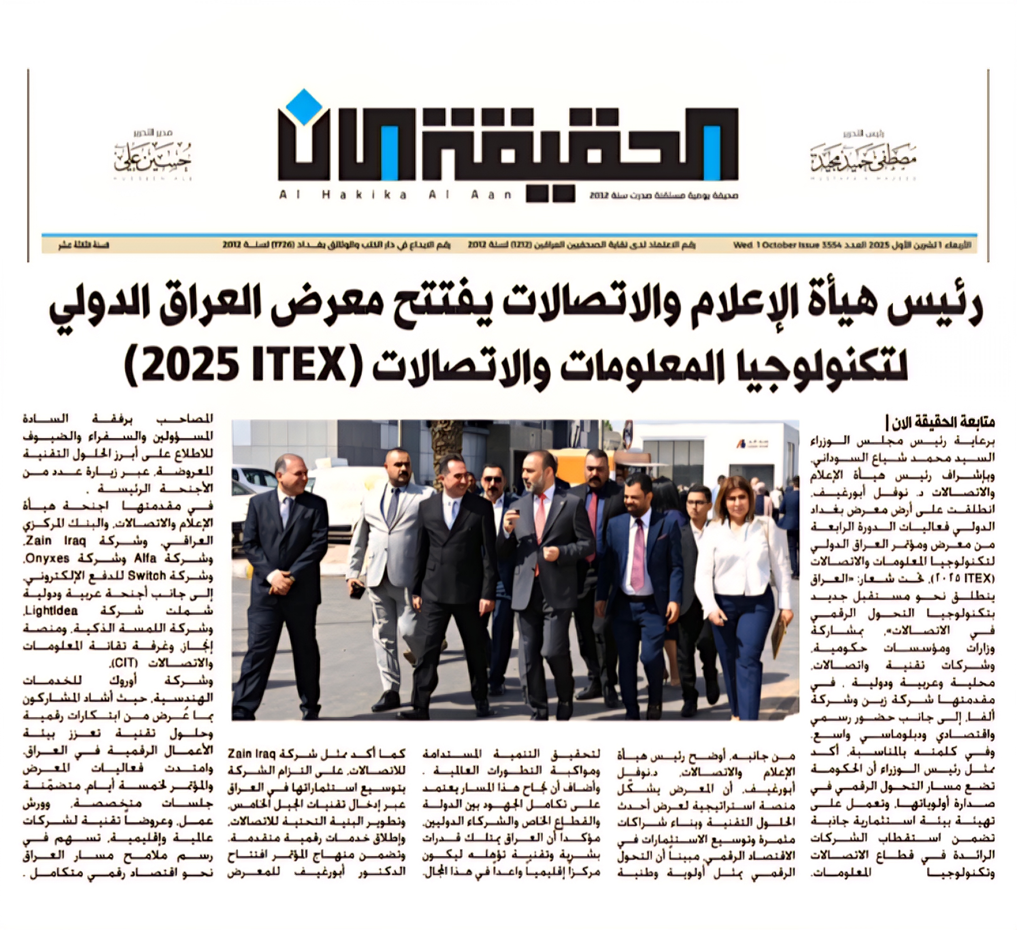 صحيفة الحقيقة الان .. رئيس هيأة الاعلام والاتصالات يفتتح معرض العراق الدولي لتكنولوجيا المعلومات والاتصالات