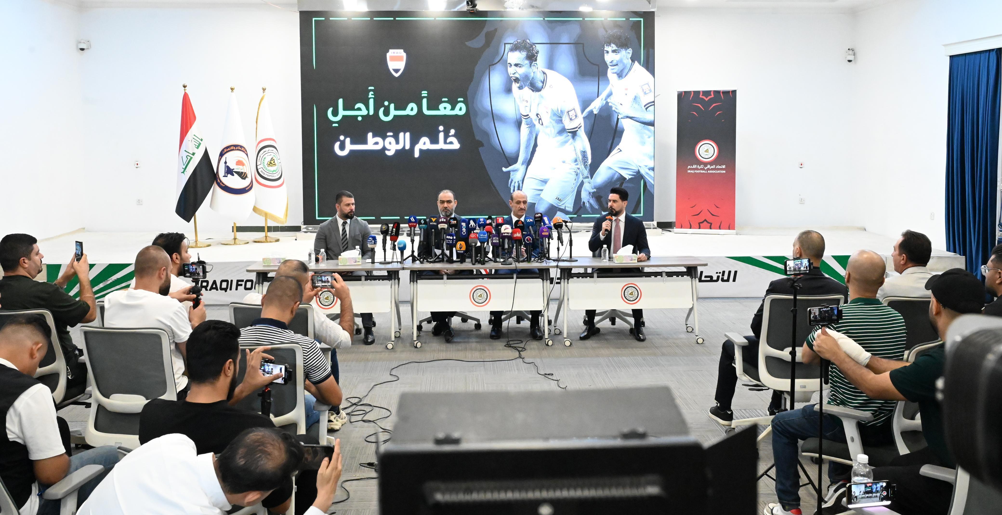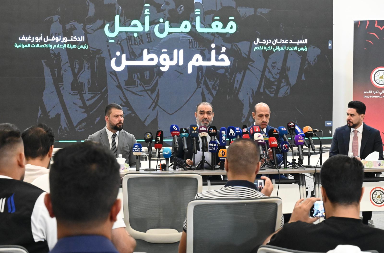 عقد رئيس هيأة الإعلام والاتصالات د.نوفل ابورغيف مع رئيس الاتحاد العراقي لكرة القدم الكابتن عدنان درجال، مؤتمراً صحفياً مشتركاً في مقر الاتحاد، أعلنا فيه العمل برؤية مشتركة لدعم المنتخب الوطني في مشوار الملحق الآسيوي المؤهل إلى نهائيات كأس العالم 2026، بحضور ممثلي وسائل الإعلام الوطنية والدولية.