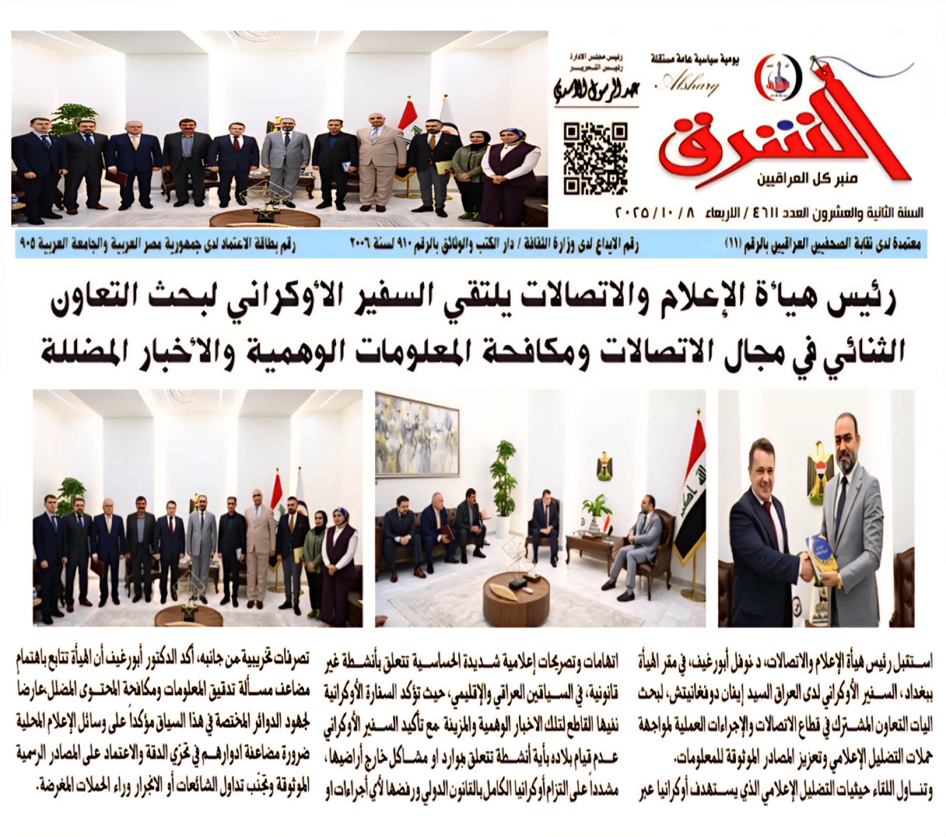 صحيفة الشرق .. رئيس هيأة الاعلام والاتصالات يلتقي السفير الاوكراني