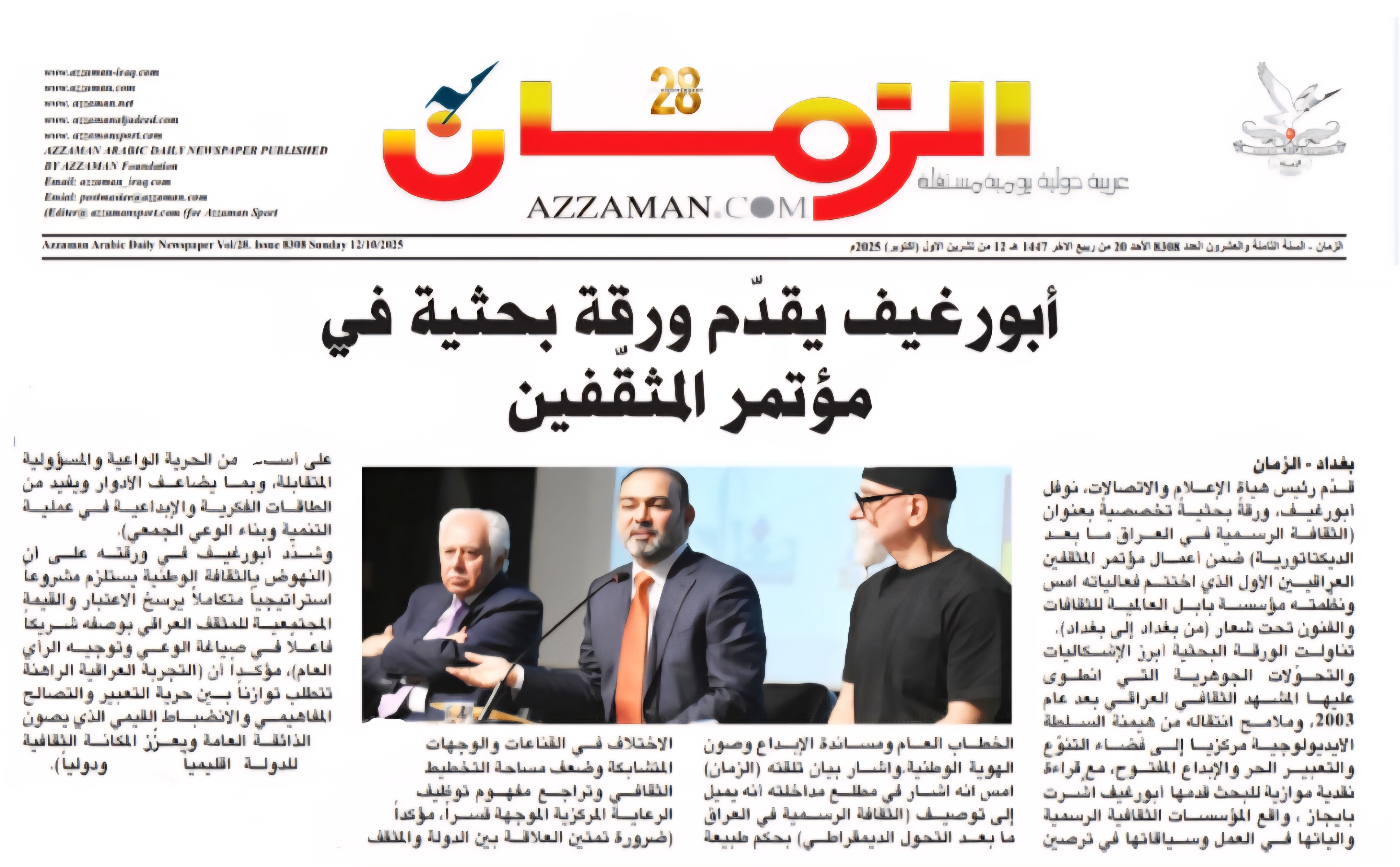 صحيفة الزمان .. ابورغيف يقدم ورقة بحثية في مؤتمر المثقفين