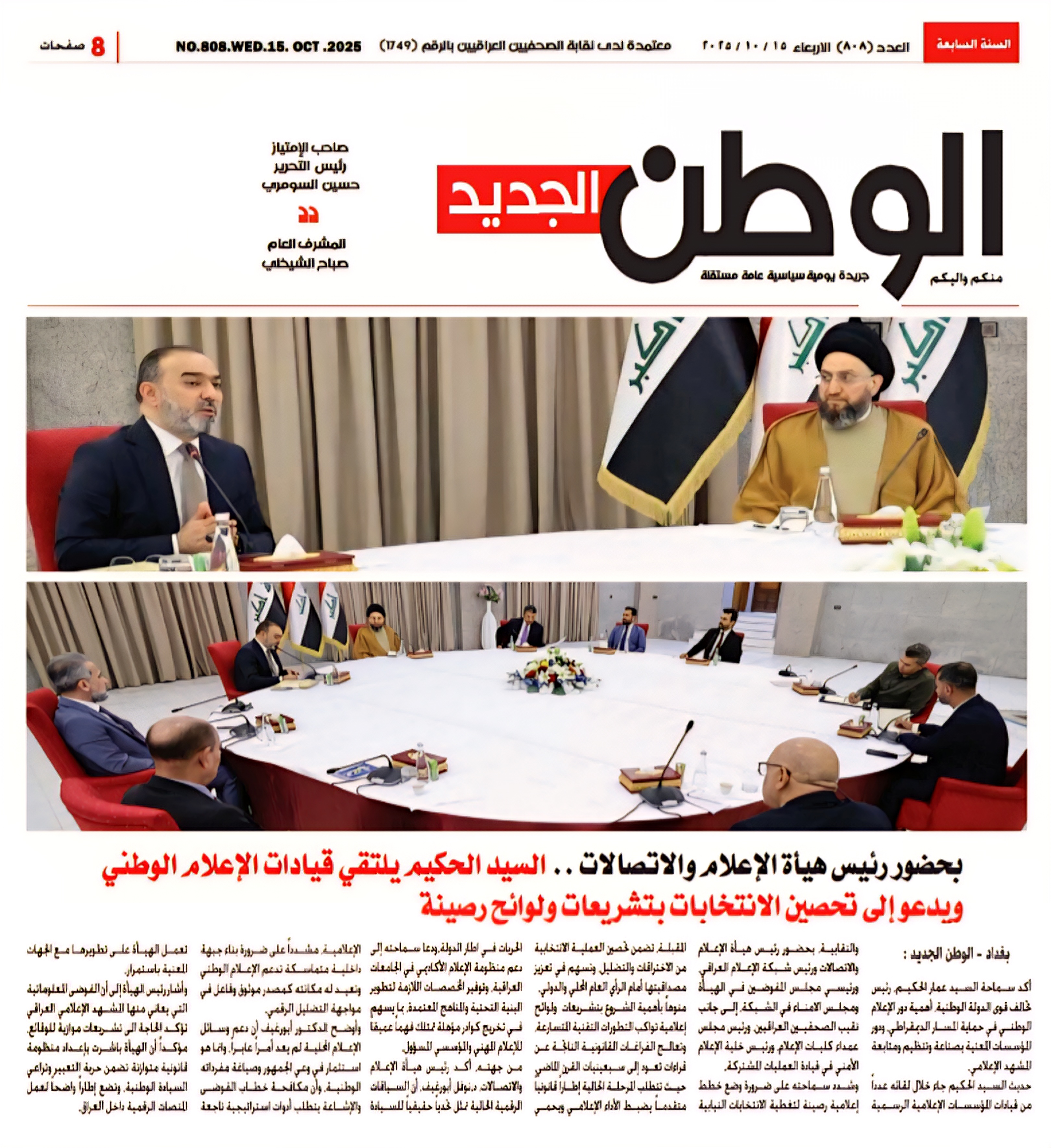 صحيفة الوطن .. بحضور رئيس هيأة الاعلام والاتصالات السيد الحكيم يلتقي قيادات الاعلام الوطني
