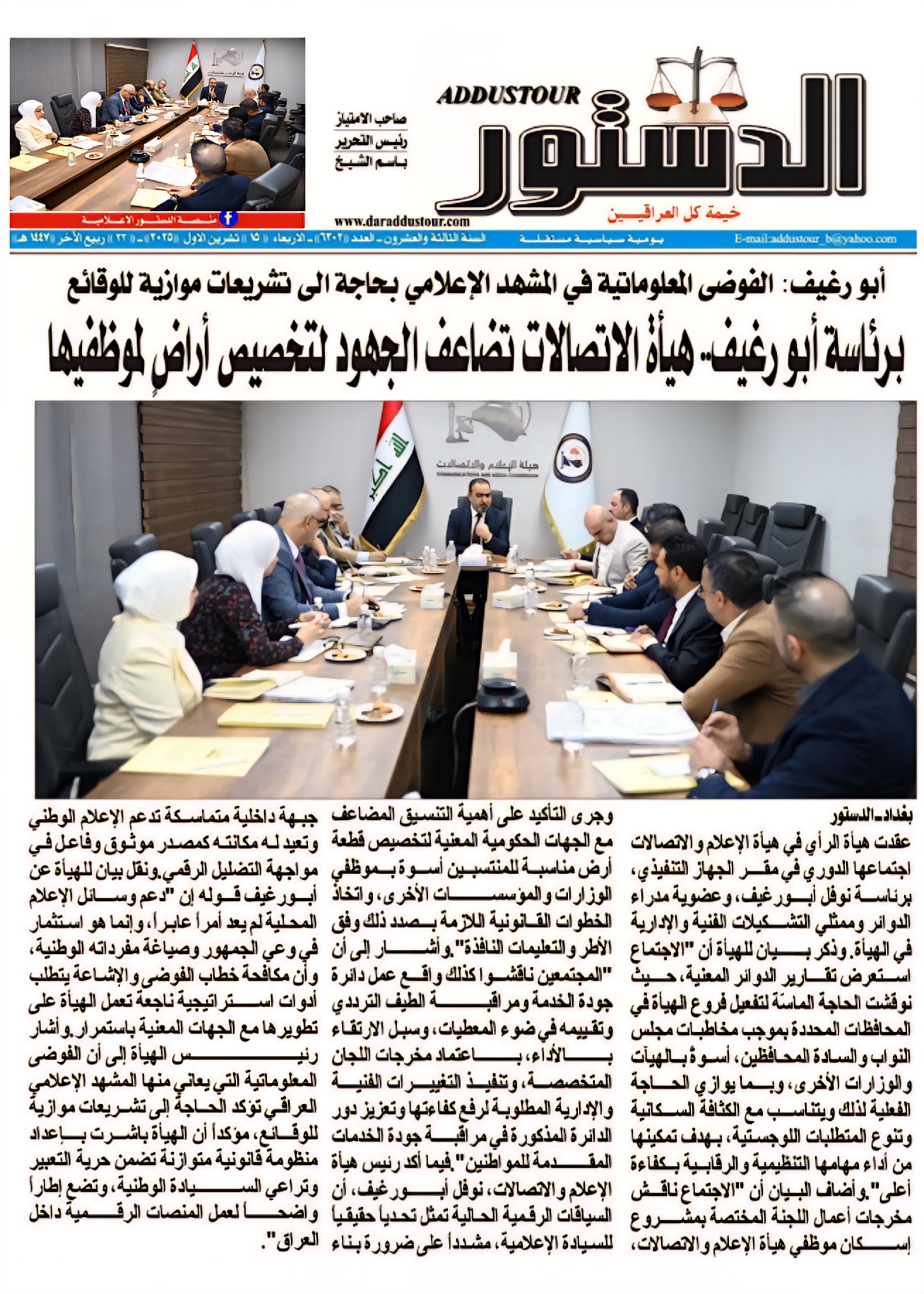 صحيفة الدستور .. برئاسة ابورغيف هيأة الاعلام تضاعف الجهود لتخصيص اراضِ لموظفيها