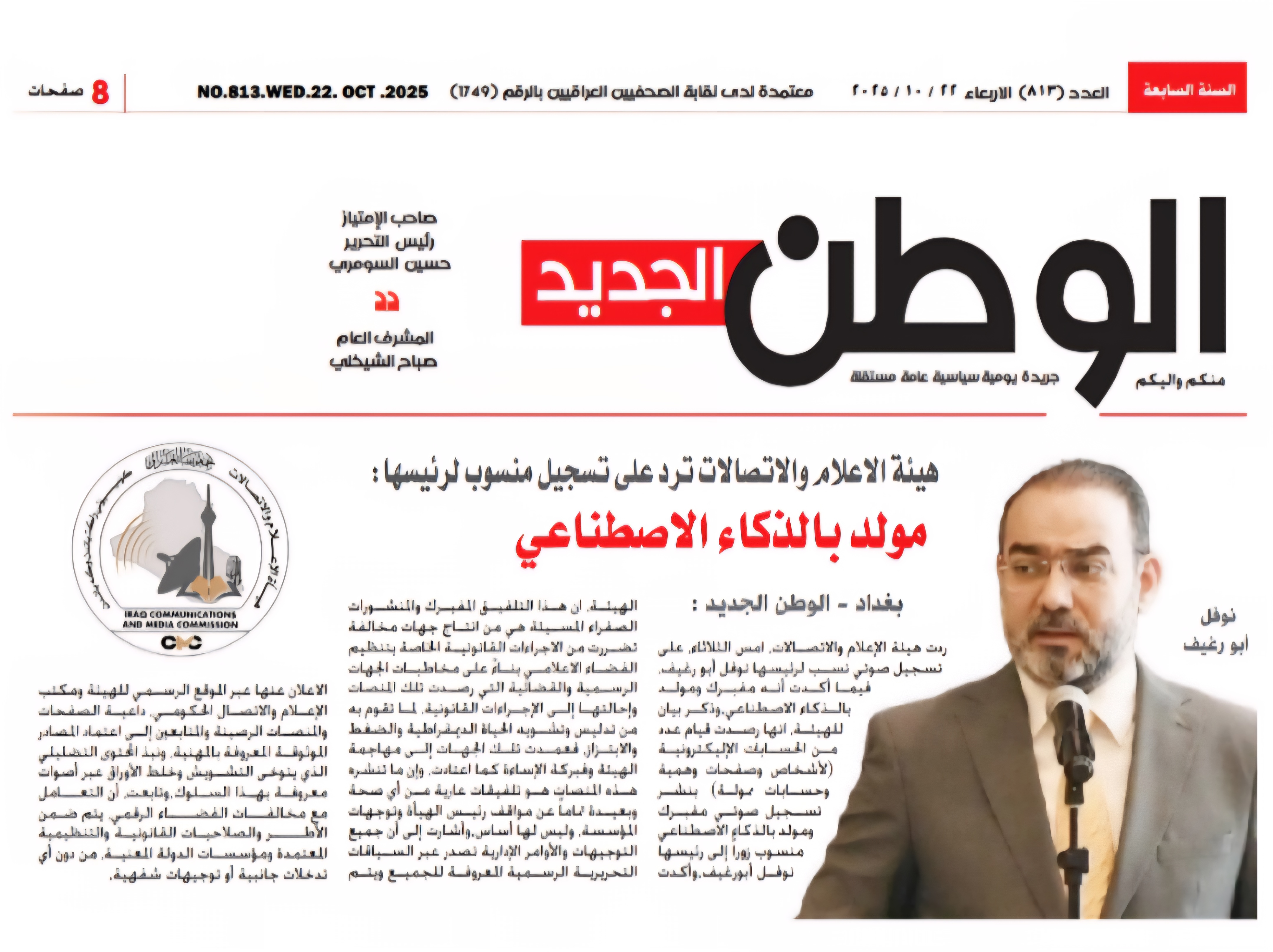 صحيفة الوطن .. هيأة الاعلام والاتصالات ترد على تسجيل منسوب لرئيسها : مولد بالذكاء الاصطناعي