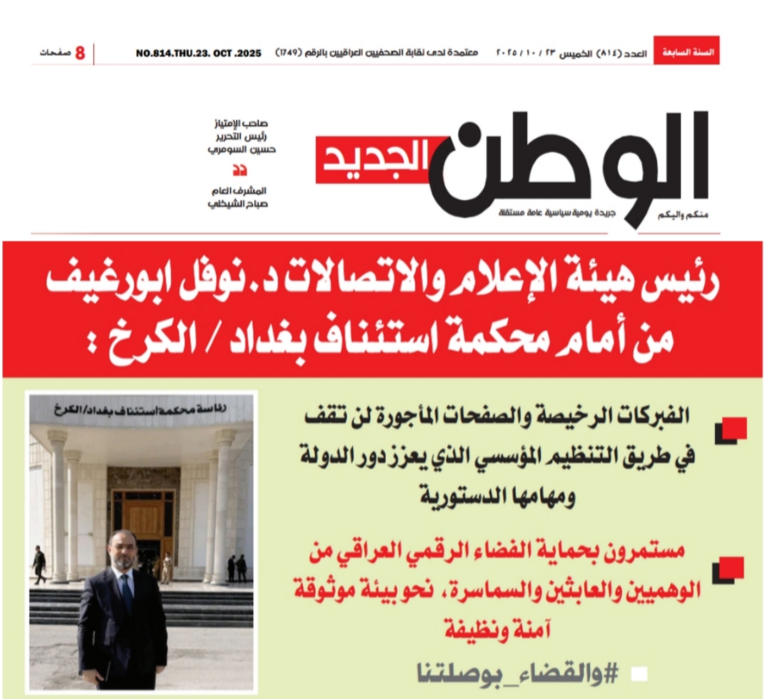 صحيفة الوطن .. ابورغيف من أمام محكمة استئناف بغداد : الفبركات الرخيصة والصفحات المأجورة لن تقف في طريق التنظيم المؤسسي
