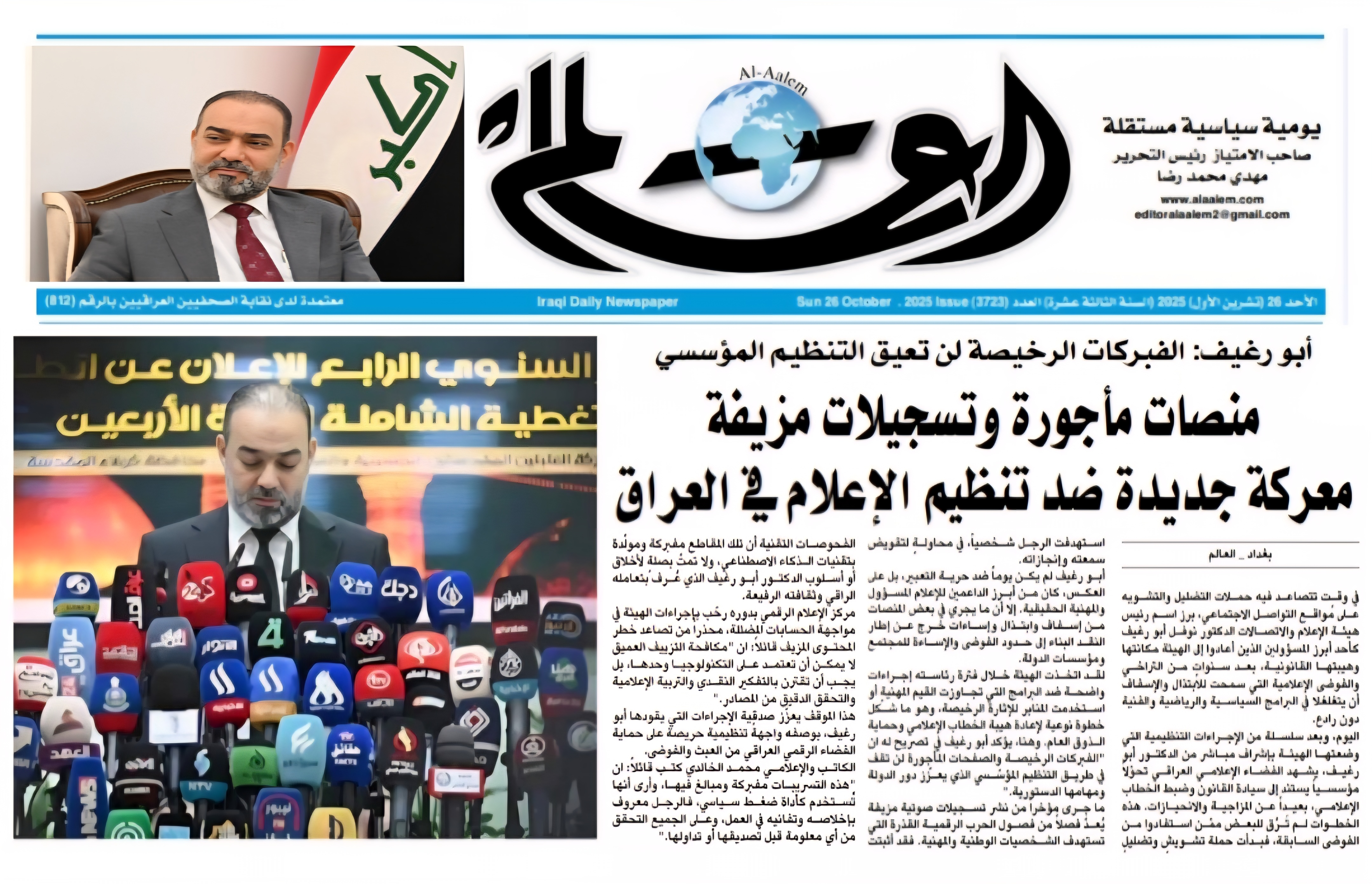 صحيفة العالم.. رئيس هيأة الاعلام والاتصالات يطرح من بيروت مبادرات العراق حول مسارات الاعلام والتحول الرقمي