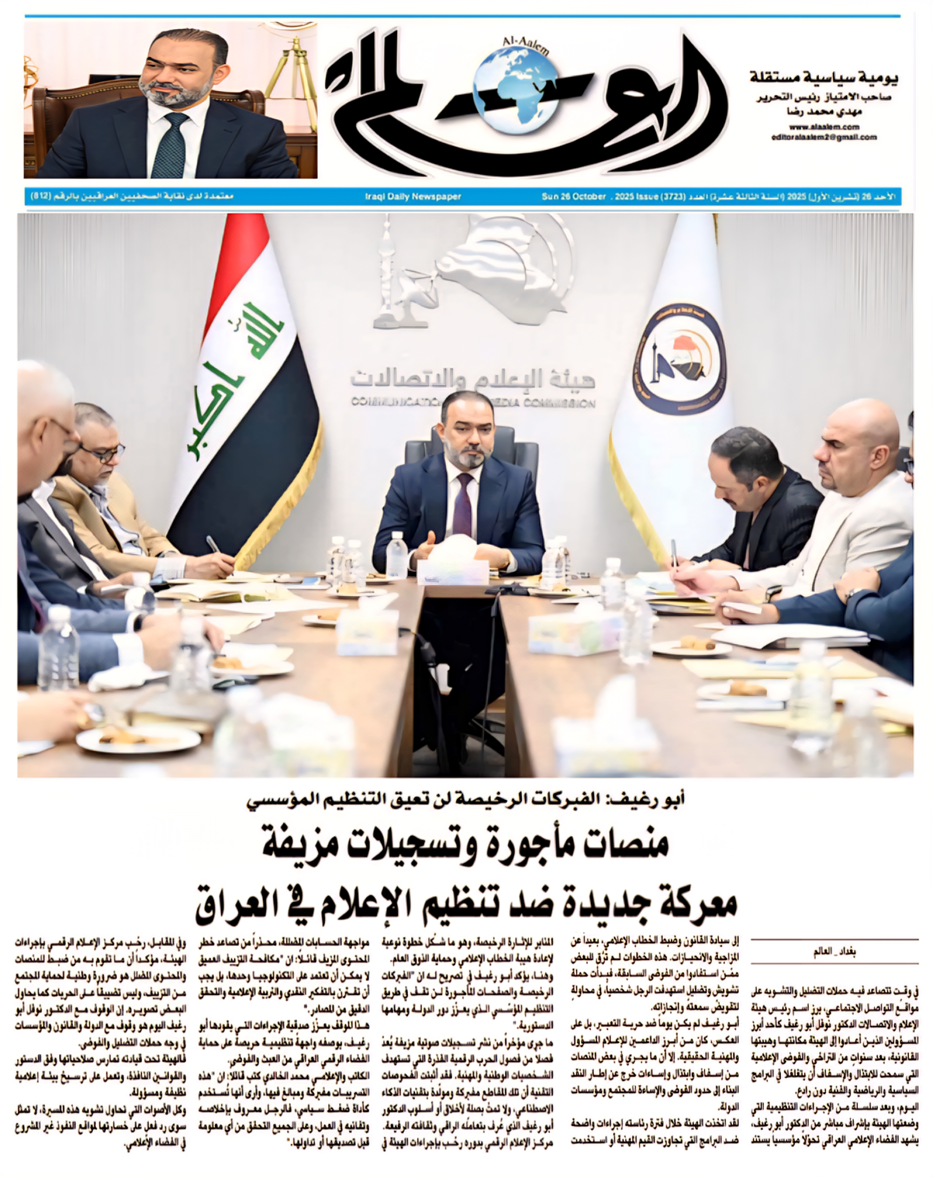 صحيفة العالم .. معركة جديدة ضد تنظيم الاعلام في العراق