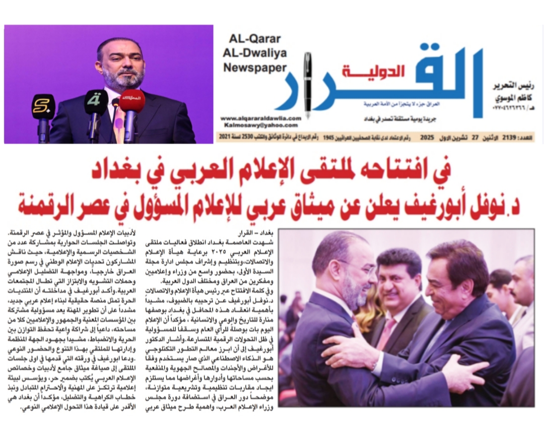 صحيفة القرار الدولية .. د.نوفل ابورغيف يعلن عن ميثاق عربي للأعلام المسؤول في عصر الرقمنة