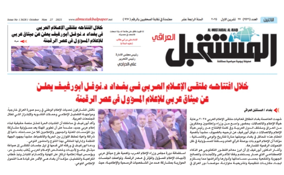 صحيفة المستقبل .. د.نوفل ابورغيف يعلن عن ميثاق عربي للأعلام المسؤول في عصر الرقمنة