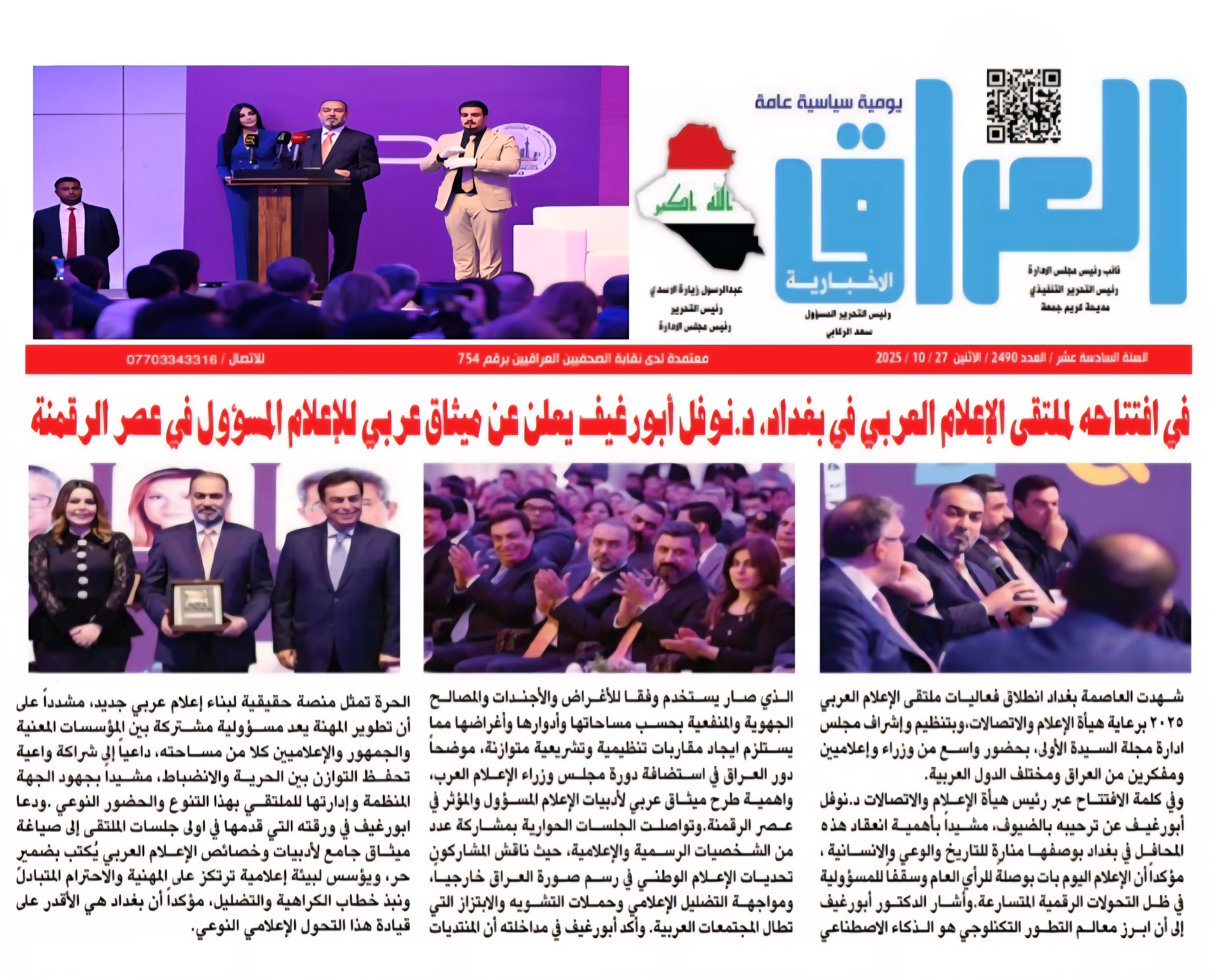 صحيفة العراق الاخبارية.. د.نوفل ابورغيف يعلن عن ميثاق عربي للأعلام المسؤول في عصر الرقمنة