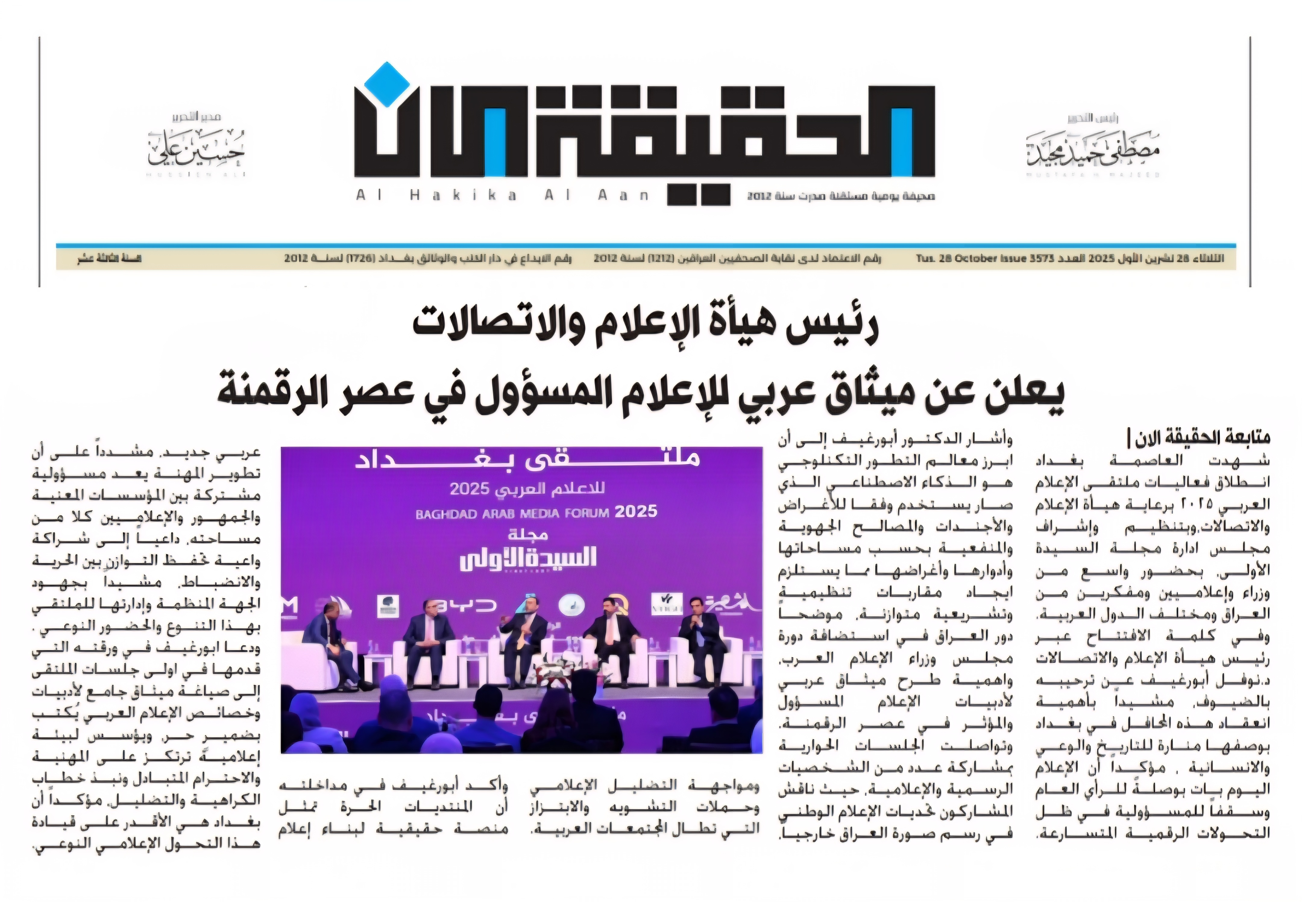 صحيفة العراق الاخبارية.. رئيس هيأة الاعلام والاتصالات يطرح من بيروت مبادرات العراق حول مسارات الاعلام والتحول الرقمي