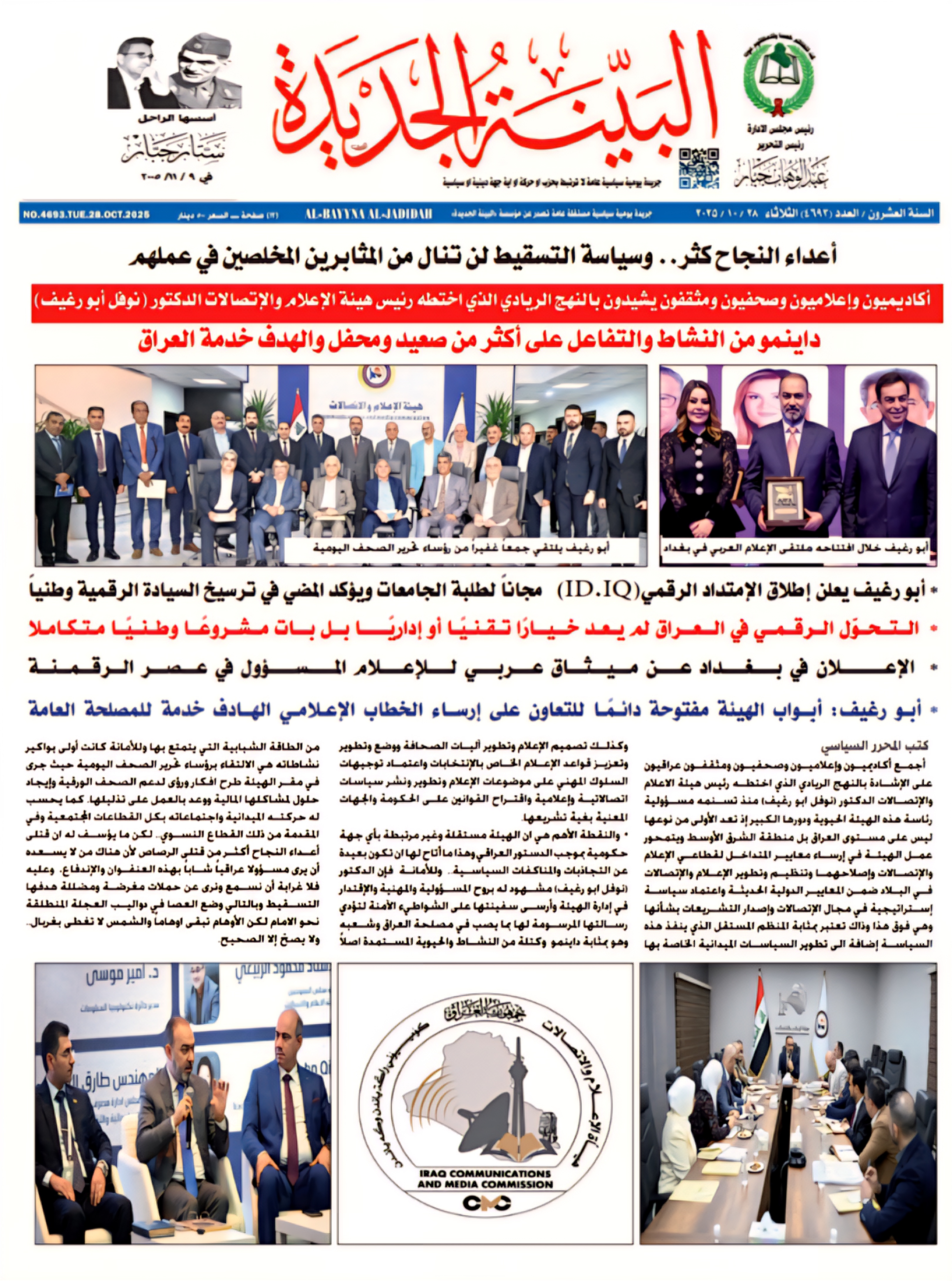 صحيفة البينة الجديدة.. اكادميون واعلاميون وصحفيون ومثقفون يشيدون بالنهج الذي اختطهُ رئيس هيأة الاعلام والاتصالات د.نوفل ابورغيف