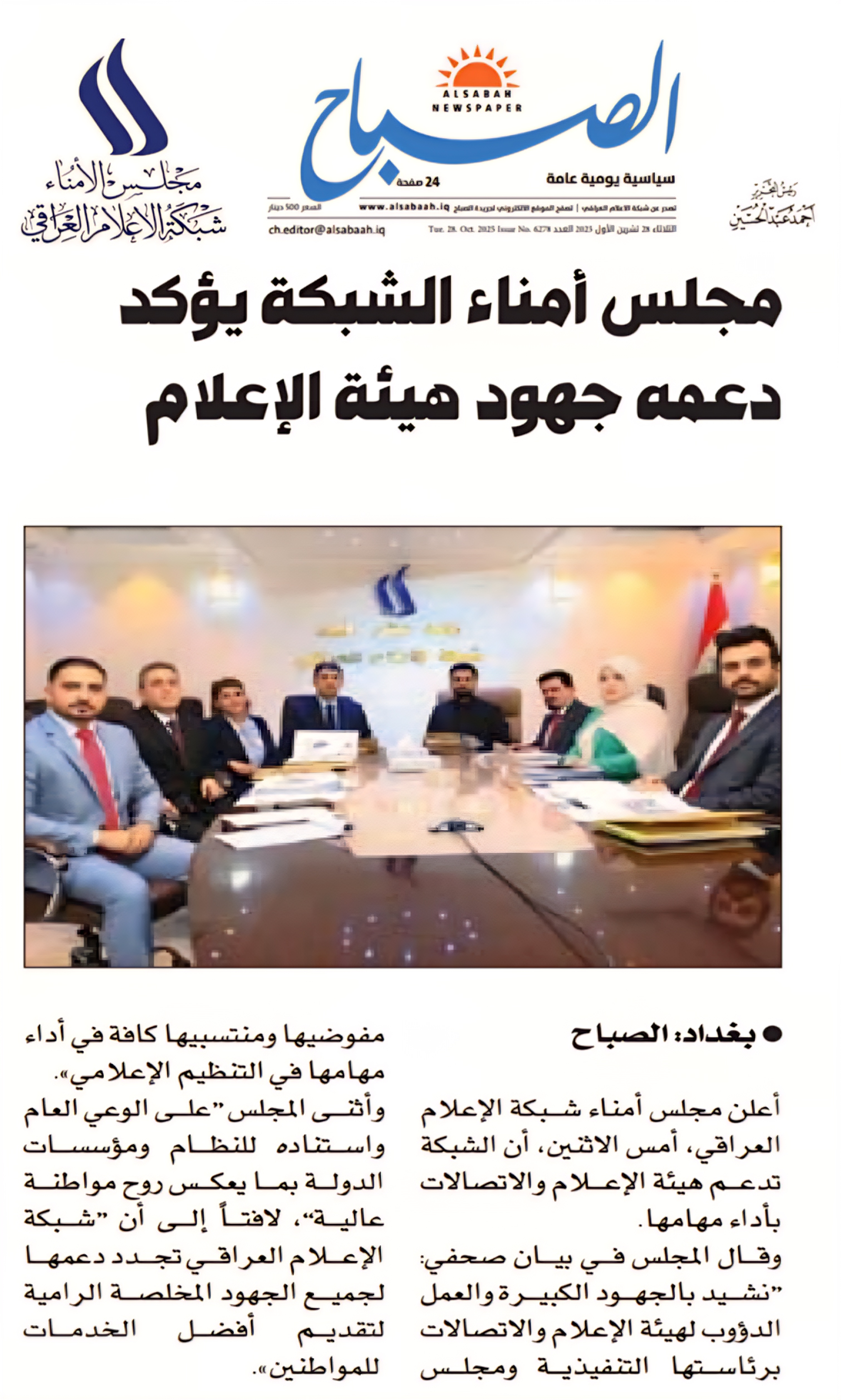 صحيفة الصباح .. مجلس امناء شبكة الاعلام العراقي يؤكد دعمه لجهود هيأة الاعلام والاتصالات