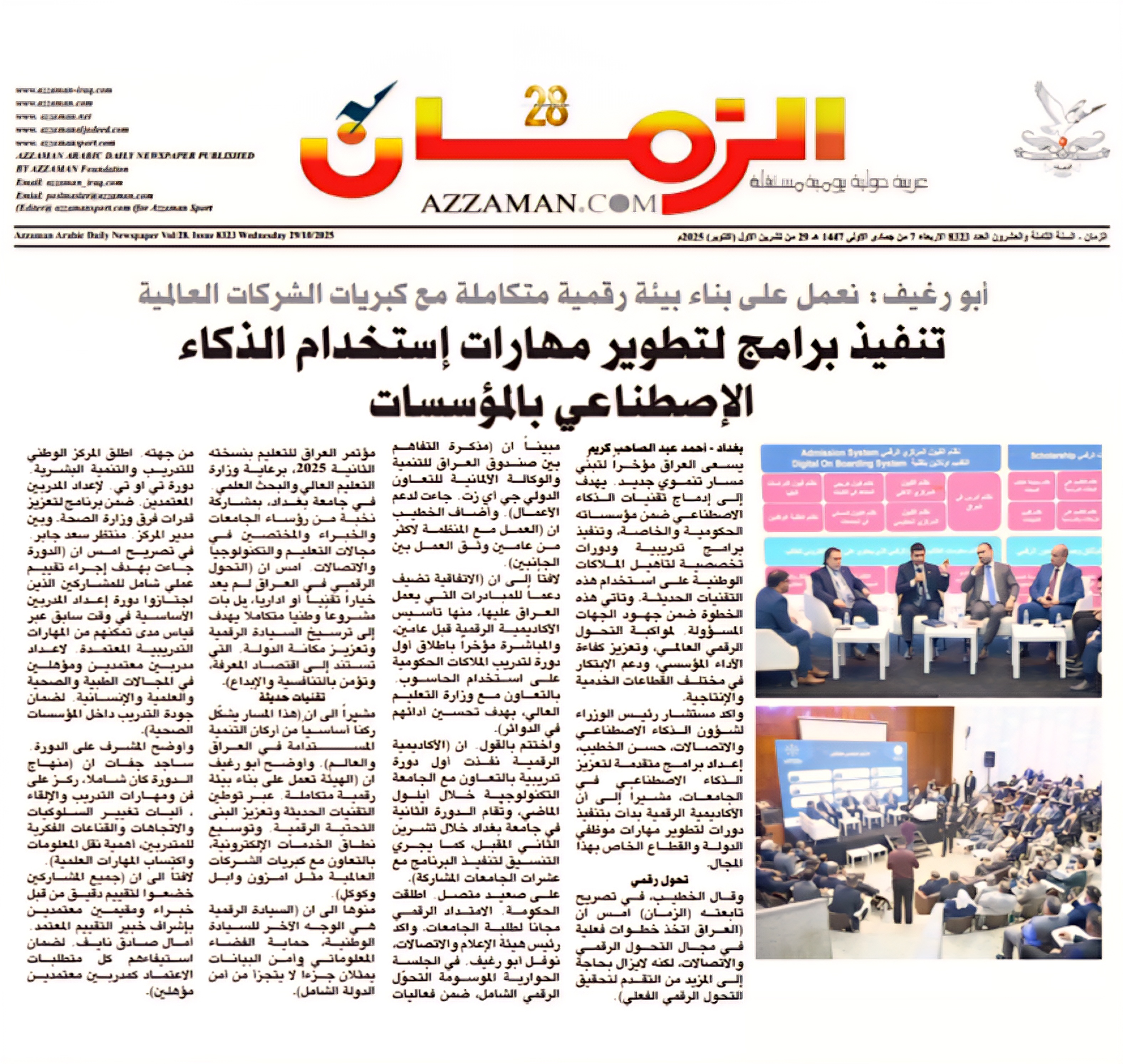 صحيفة الزمان .. ابورغيف : نعمل على بناء بيئة رقمية متكاملة مع كبريات الشركات العالمية