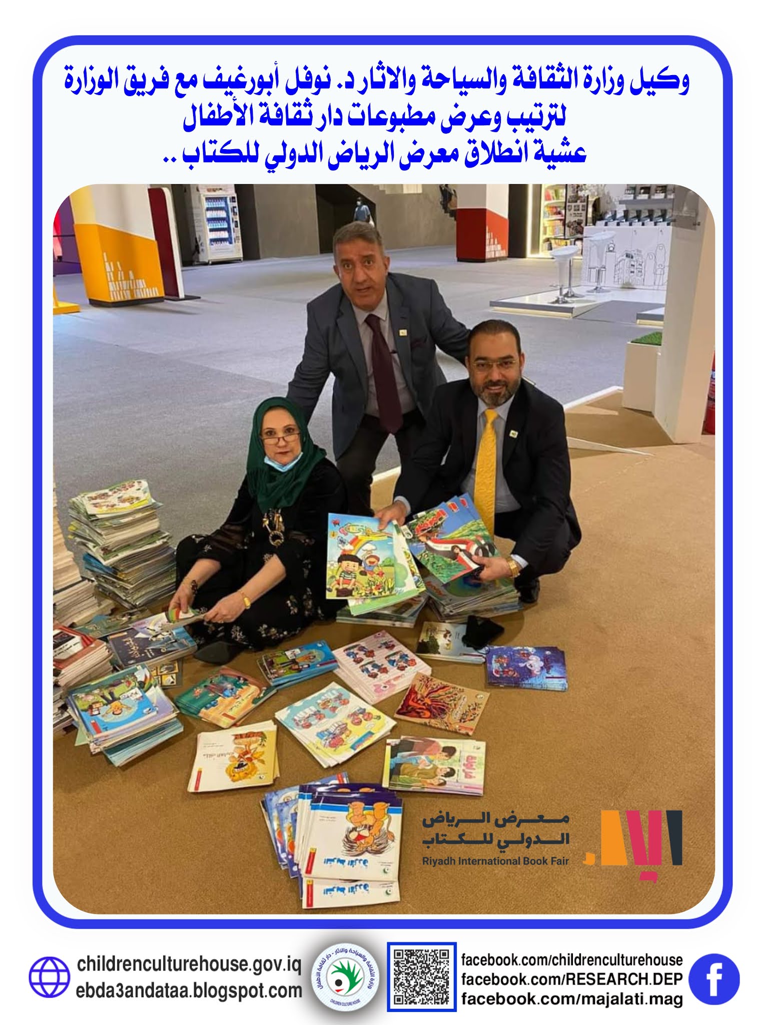 وكيل وزارة الثقافة والسياحة والاثار د.نوفل أبو رغيف مع فريق الوزارة لترتيب وعرض مطبوعات دار ثقافة الاطفال عشية أنطلاق معرض الرياض الدولي للكتاب