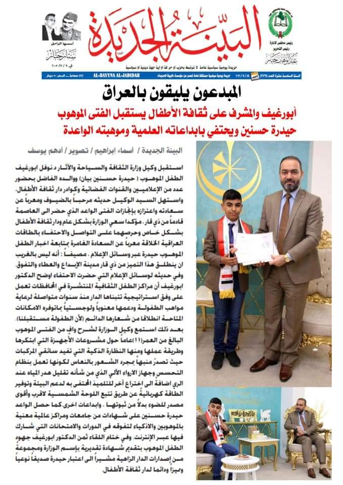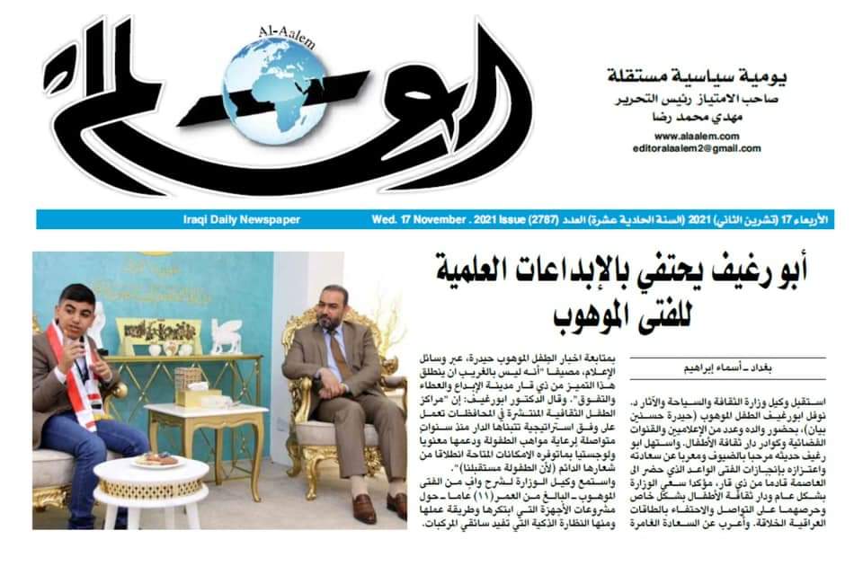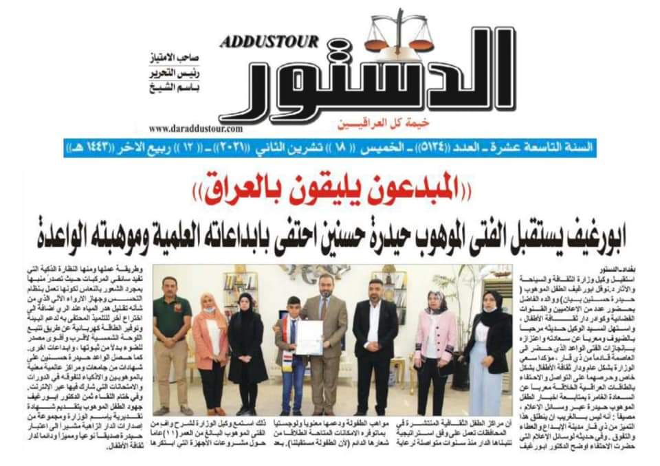 شكرآ لصحافتنا الوطنية التي تحتفي معنا دائماً ب #الطفولة_العراقية وبالمبدعين والموهوبين والمتميزين.