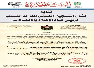 صحيفة البينة .. تنويه بشأن التسجيل الصوتي المفبرك المنسوب لرئيس هيأة الاعلام والاتصالات