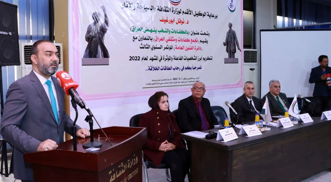 واصفاً الحياة الثقافية في العراق بأنها النهر الثالث والهوية الأساسية، بدأ الوكيل الأقدم لوزارة الثقافة والسياحة والآثار #د_نوفل_ابورغيف كلمته الافتتاحية لمؤتمر #النخب_والكفاءات_الوطنية العراقية الذي احتضنته #دائرة_الفنون_العامة في الوزارة حيث انطلق منهاج المؤتمر السنوي بدورته الثالثة تحت عنوان( #بالنخب_والطاقات_الخلاقة_ينهض_العراق)، وأشار ابورغيف في كلمته أنَّ الأمم والدول تنهض بوعي علمائها وبهمم رعيلها الأول المتصدر ونخبها الفاعلة والمؤثرة.