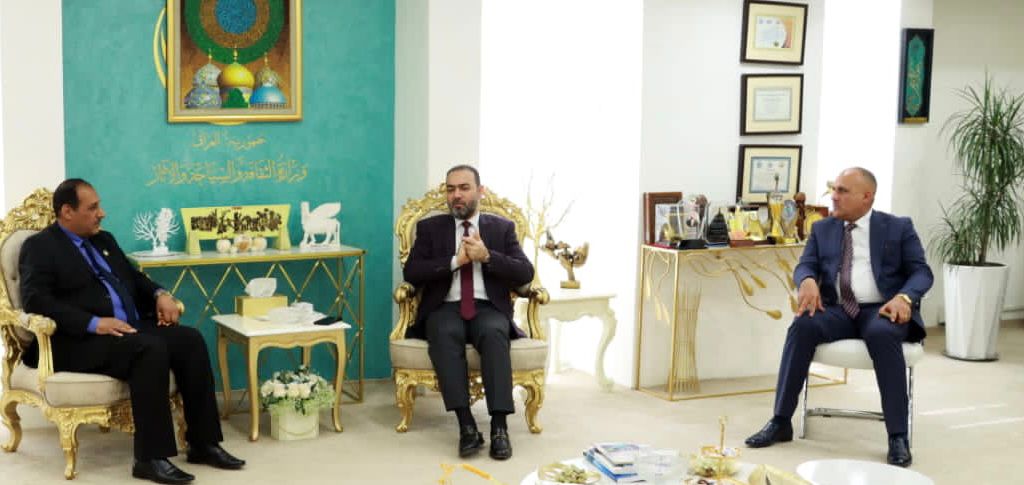 أستقبل وكيل وزارة الثقافة والسياحة والآثار #الدكتور_نوفل_ابورغيف مدير وكالة العراقية نيوز #د_عبدالله_الصجري والوفد المرافق الذي ضمَّ السادة #د_رشيد_احمد_الخفاجي والسيد #نعمان_المشهداني ومدير العلاقات العامة السيد #علي_الجنابي ومدير الشؤون القانونية السيدة #عبير_العزاوي وعضو ادارة الوكالة السيدة #ندى_طالب في مكتبة بمقر الوزارة .