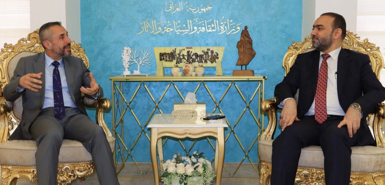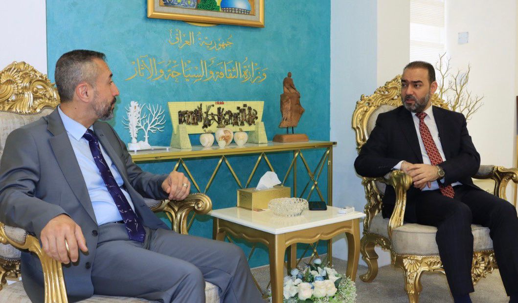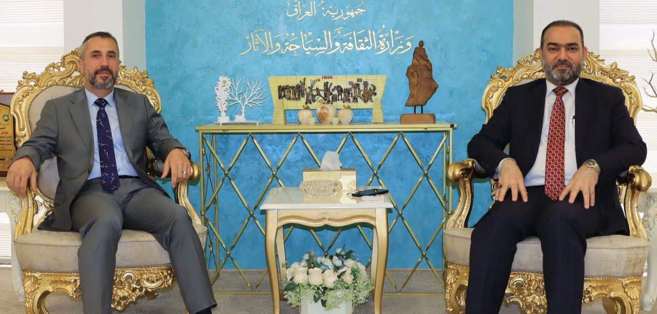 استقبل الوكيل الاقدم لوزارة الثقافة والسياحة والاثار #د_نوفل_ابورغيف، وكيل ديوان الوقف الشيعي #د_احسان_جعفر في مقر الوزارة لمناقشة وبحث البرامج والرؤى المشتركة وسبل تفعيلها بين المؤسسات ذات العلاقة في وزارة الثقافة وفي ديوان الوقف الشيعي، في سياق العمل التكاملي وتنسيق الادوار بين وزارات ألدولة ومؤسساتها، ولاسيما المؤسسات ذات البعد الثقافي والانساني والتوعوي، وتناول اللقاء مقترحات تبادل الخبرات كلاً بحسب تجربته وامكاناته اللوجستية ولاسيما في مجالات النشر وطباعة الكتاب والندوات الثقافية والمؤتمرات الفكرية وتبادل الزيارات والحضور التفاعلي من قبل الجانبين، آخذين بنظر الاعتبار تنوع العمل الثقافي وسعة المساحات التي يجدر تفعيلها في هذا الاتجاه .